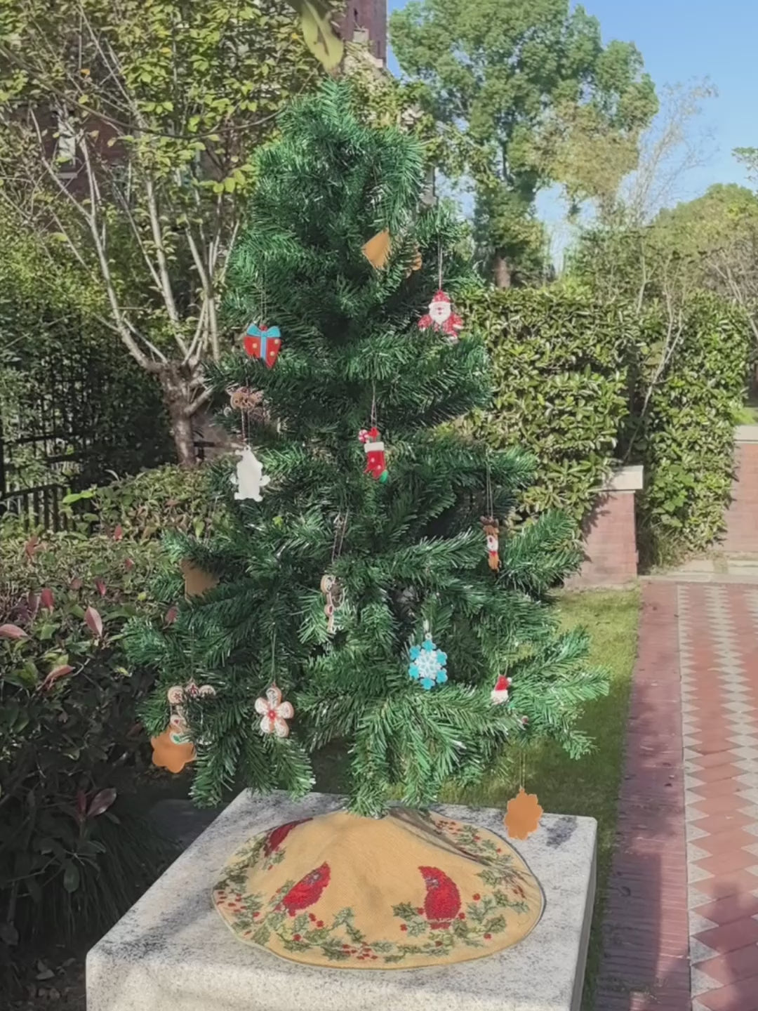 22-Inch 100% Wool Hand-Embroidered Christmas Tree Skirt – Luxury Handmade Holiday Decoration for Rustic, Farmhouse, Classic Christmas Décor