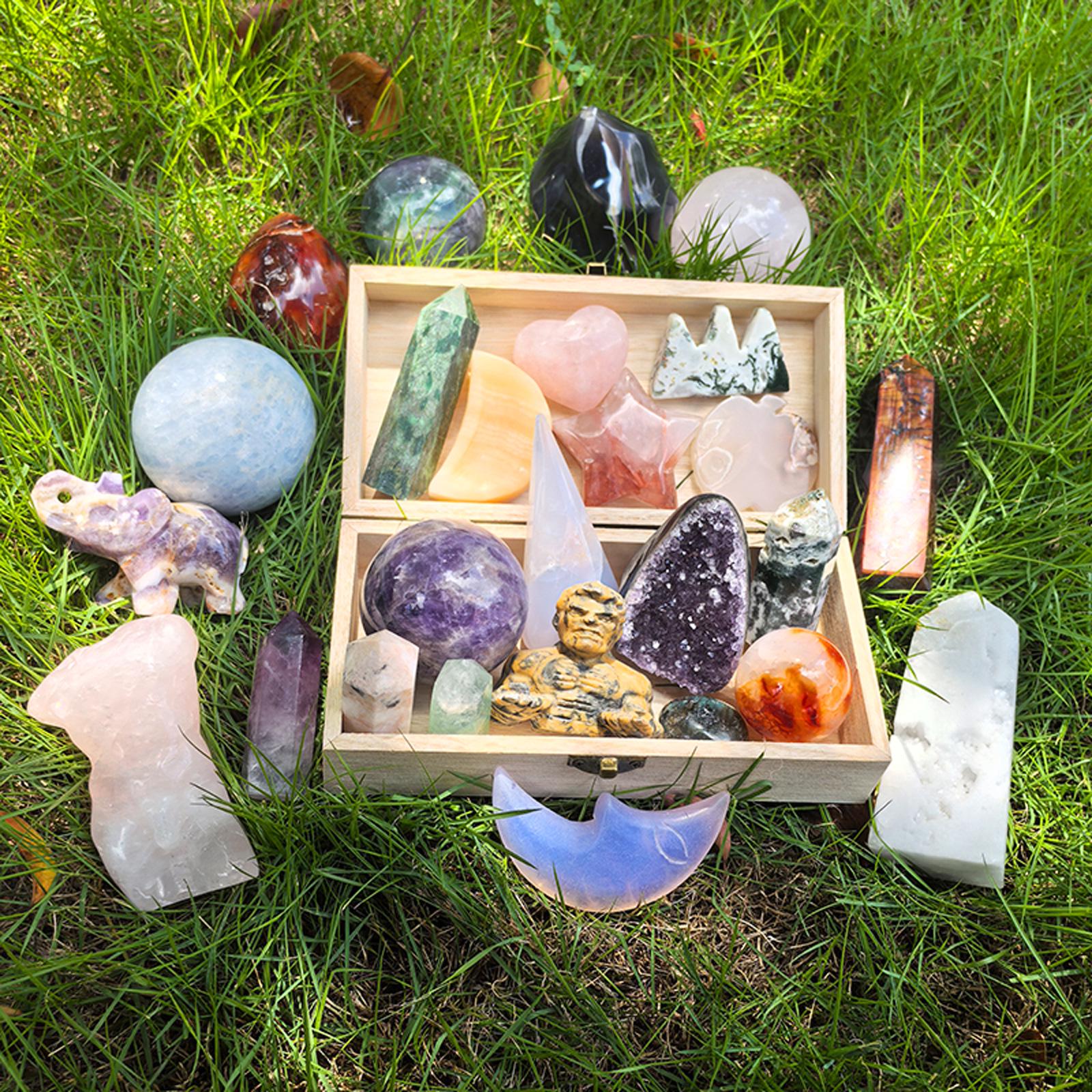 This is a random selection of crystals; the exact stones and shapes in each set will vary.