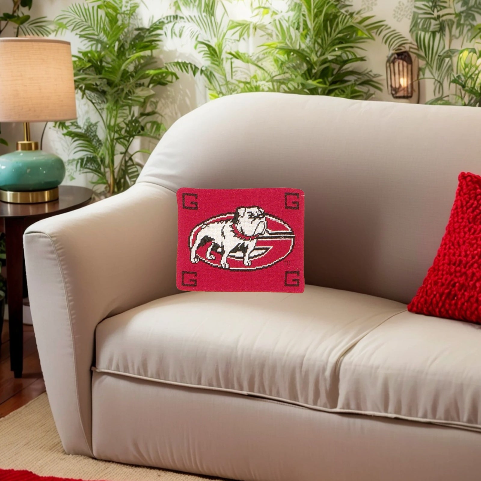 Handmade Wool Needlepoint Pillow Cover - Decorative Throw Cushion Cover - Vintage Floral Embroidery DesignG Bulldog