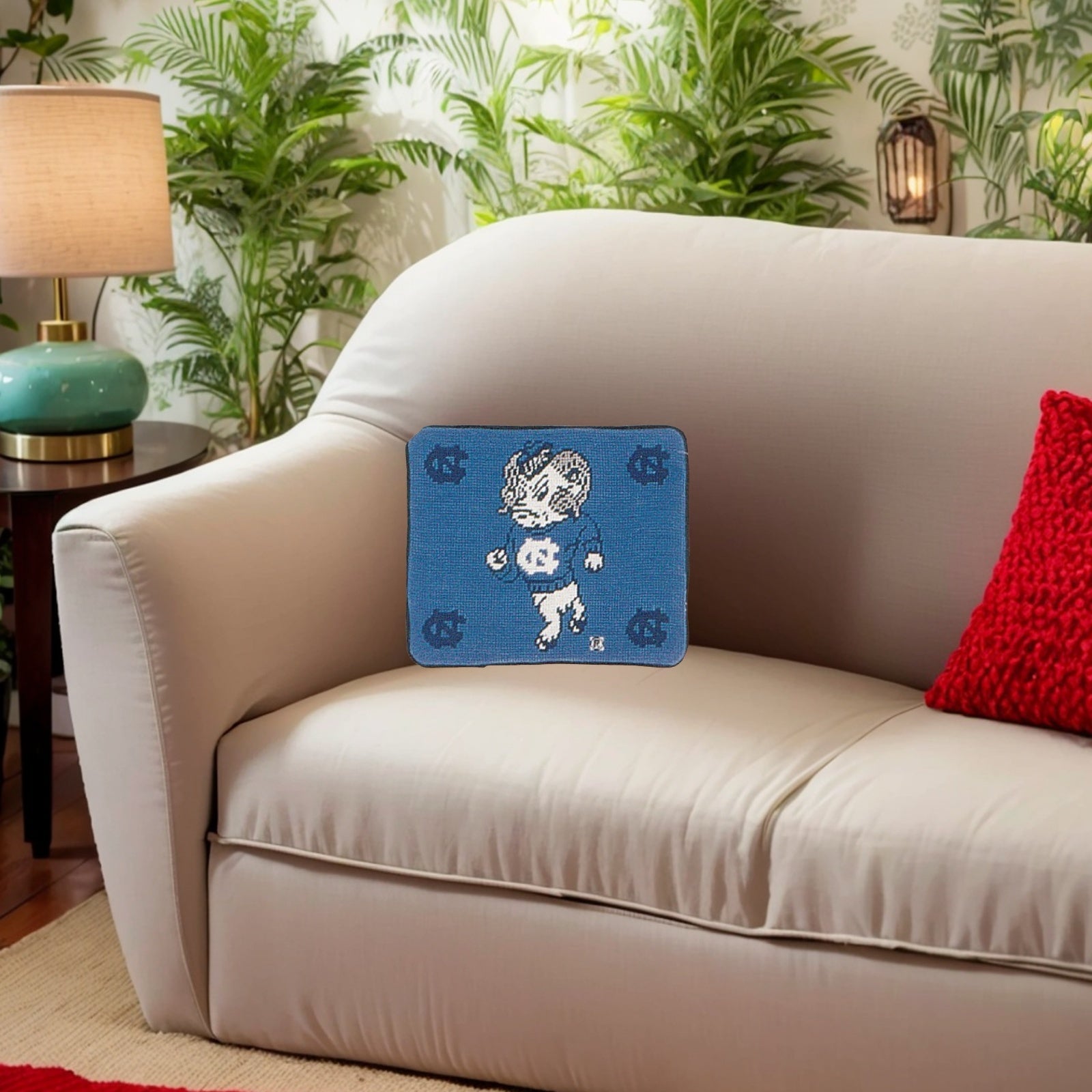 Handmade Wool Needlepoint Pillow Cover - Decorative Throw Cushion Cover - Vintage Floral Embroidery DesignU of NC Tar Heels