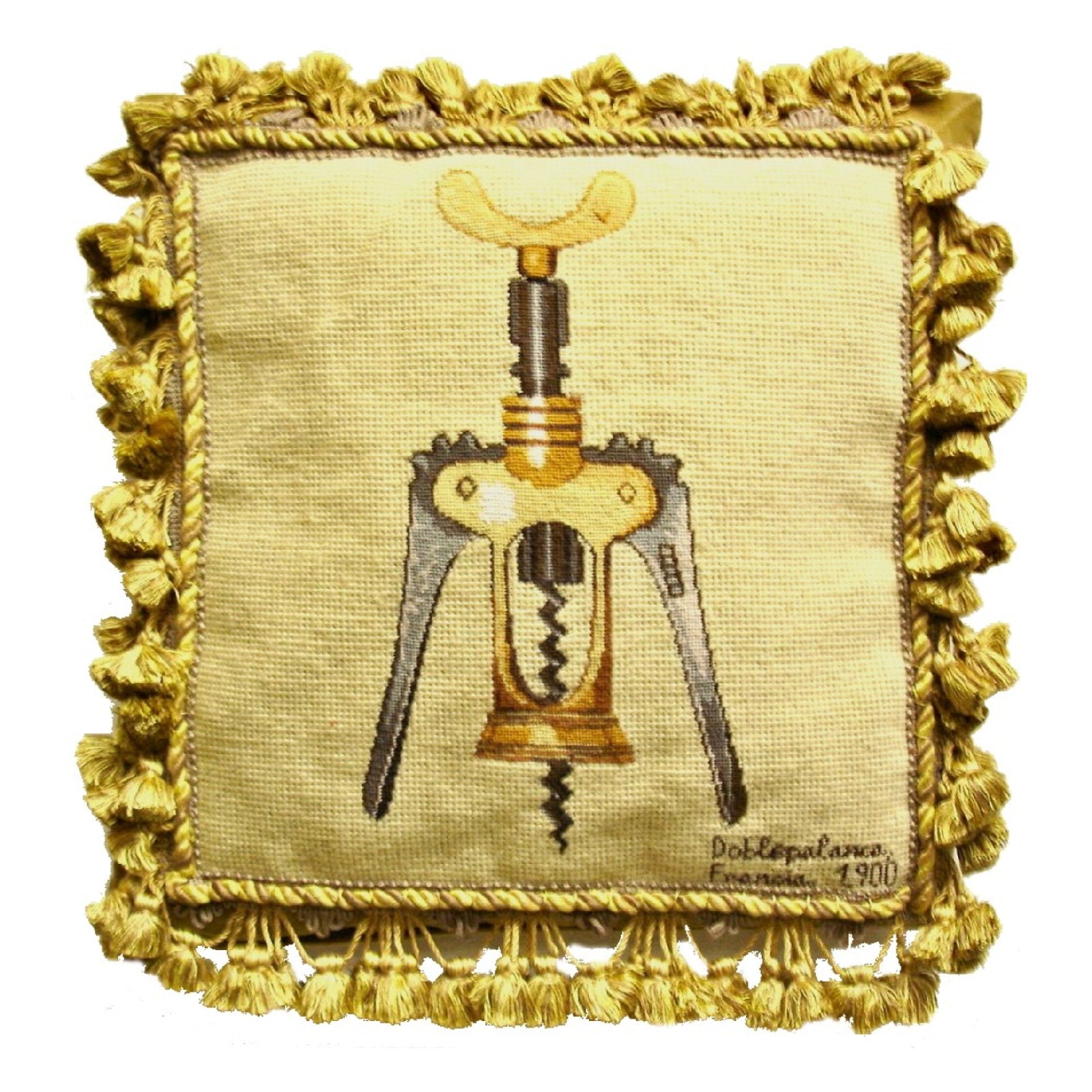 Handmade Wool Needlepoint Pillow Cover - Decorative Throw Cushion Cover - Vintage Floral Embroidery Design wine cork screwer with tassel 1