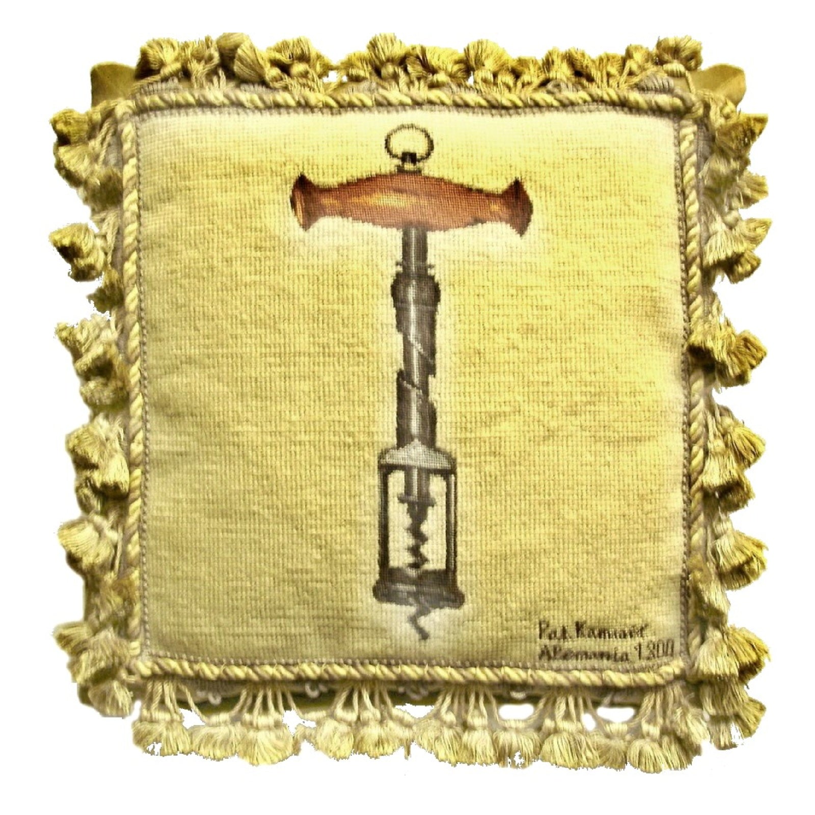 Handmade Wool Needlepoint Pillow Cover - Decorative Throw Cushion Cover - Vintage Floral Embroidery Design wine cork screwer with tassel