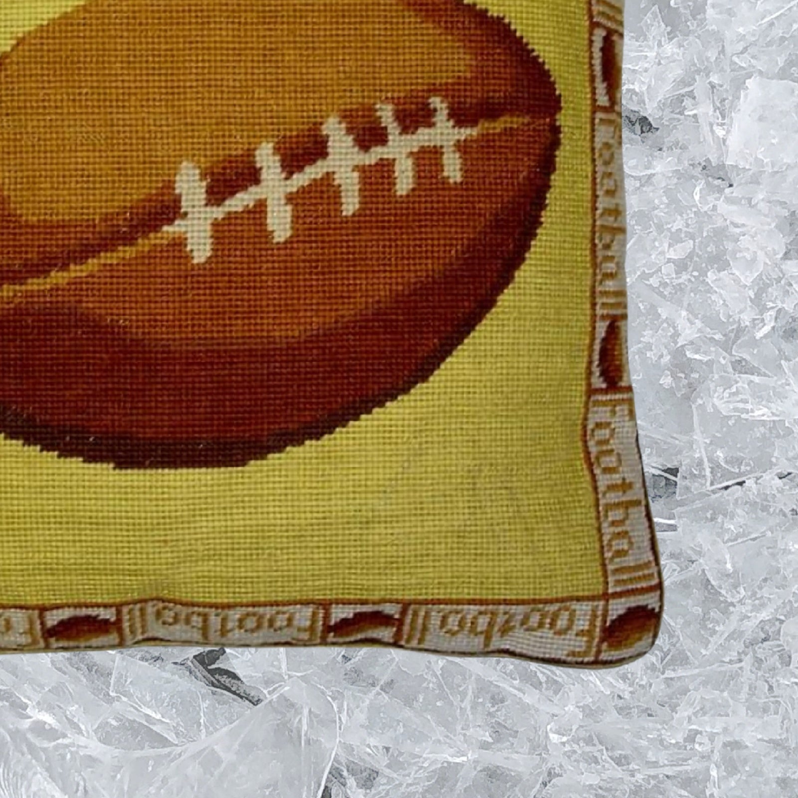Handmade Wool Needlepoint Pillow Cover - Decorative Throw Cushion Cover - Vintage Floral Embroidery Design football