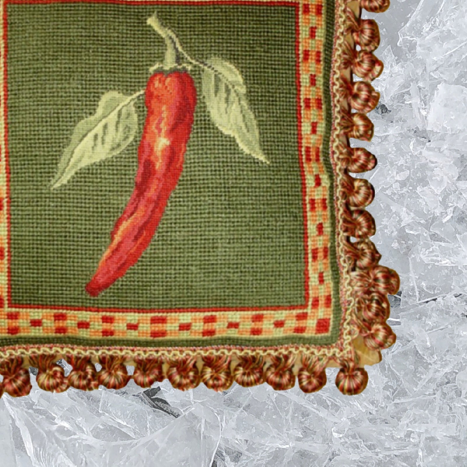 Using natural vegetable-dyed, finest 100% Australia and New Zealand wool threads on this pillow, 100% cotton velvet backing, each item is a unique artistic achievement. This pillow is hand-made by the cottage industry.