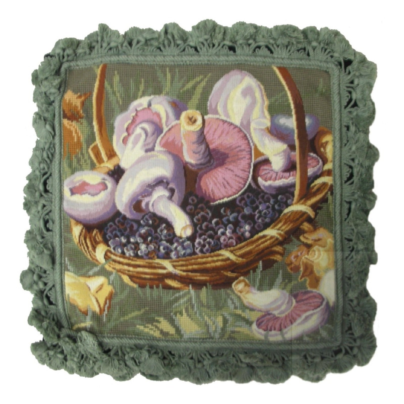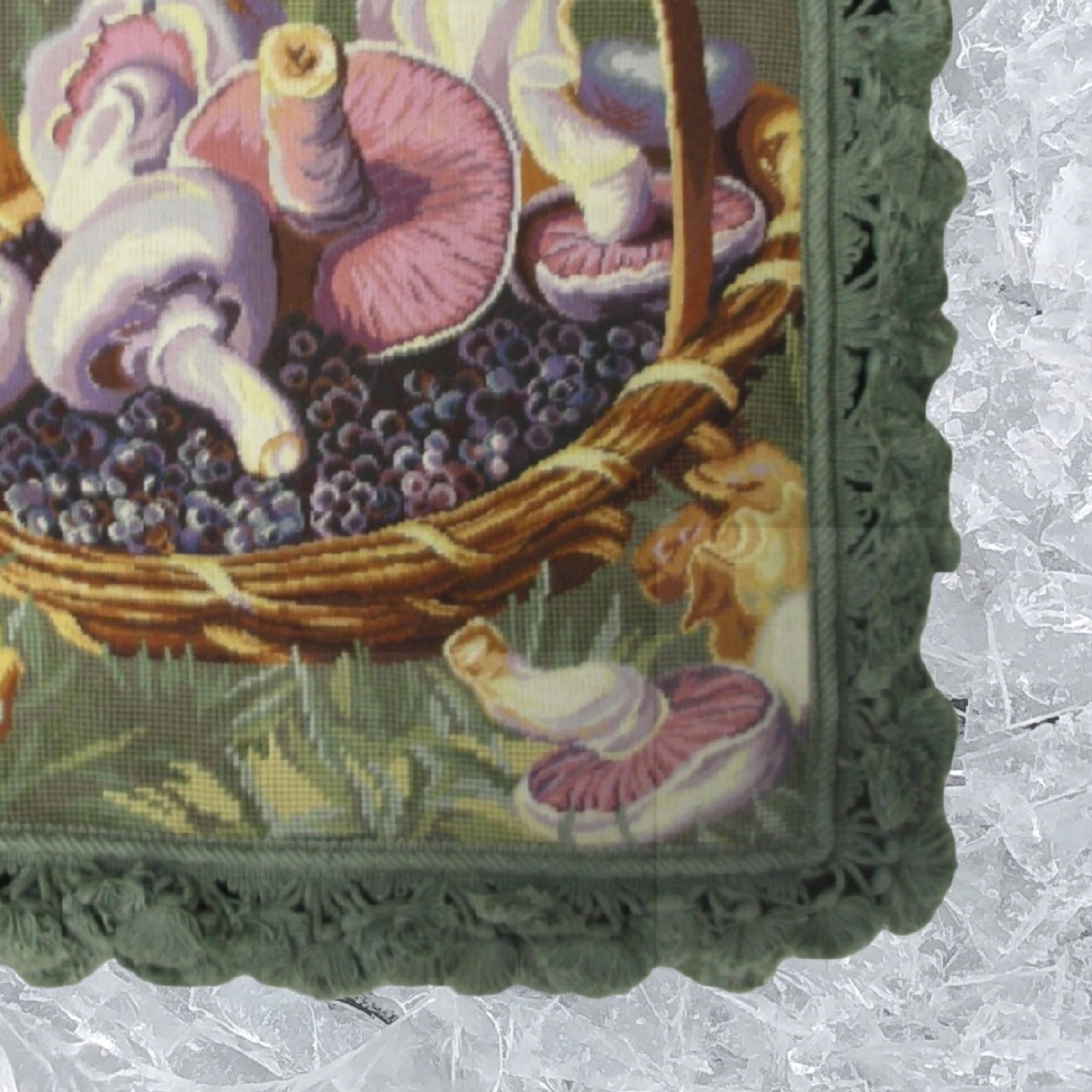 Using natural vegetable-dyed, finest 100% Australia and New Zealand wool threads on this pillow, 100% cotton velvet backing,  each item is a unique artistic achievement. This pillow is hand-made by the cottage industry.