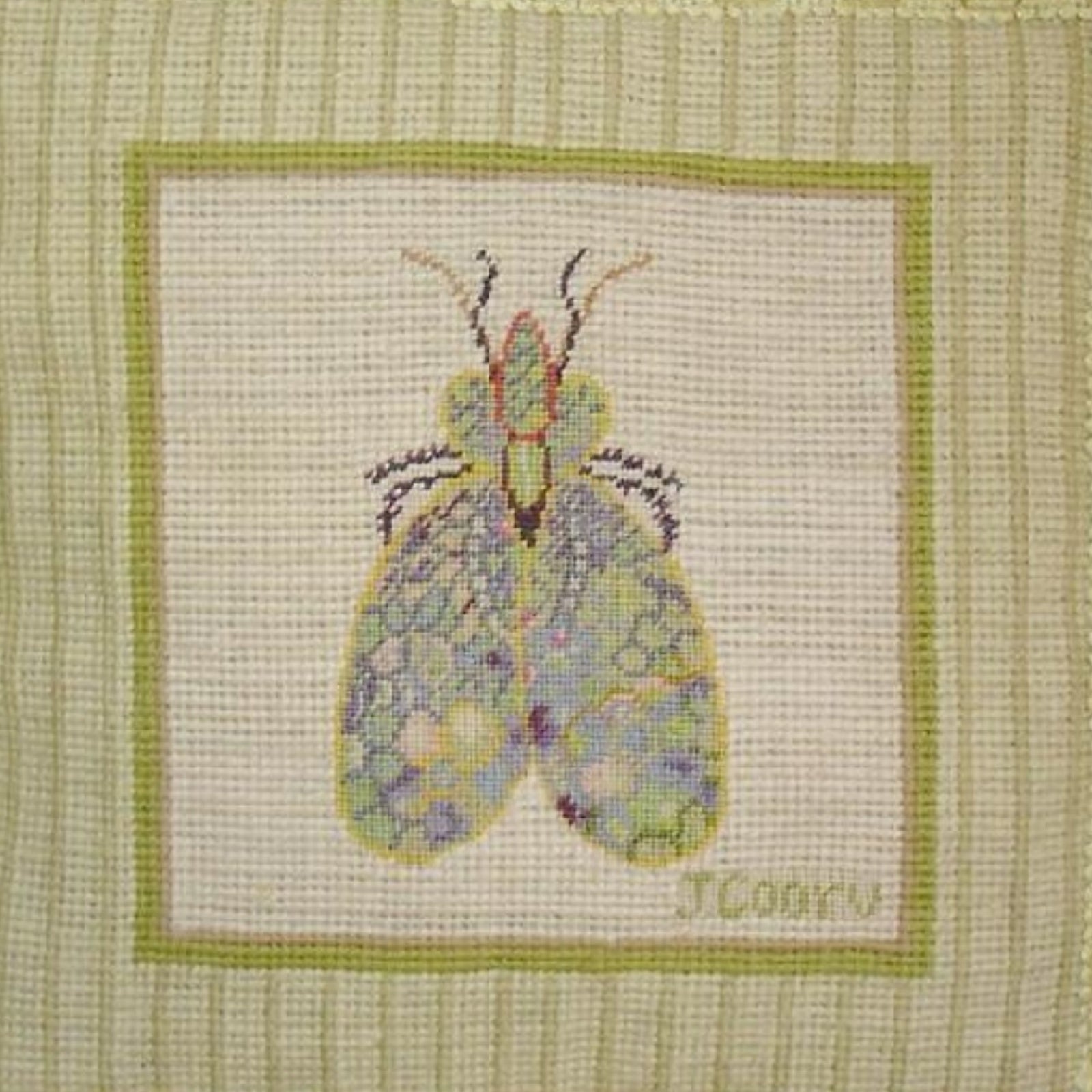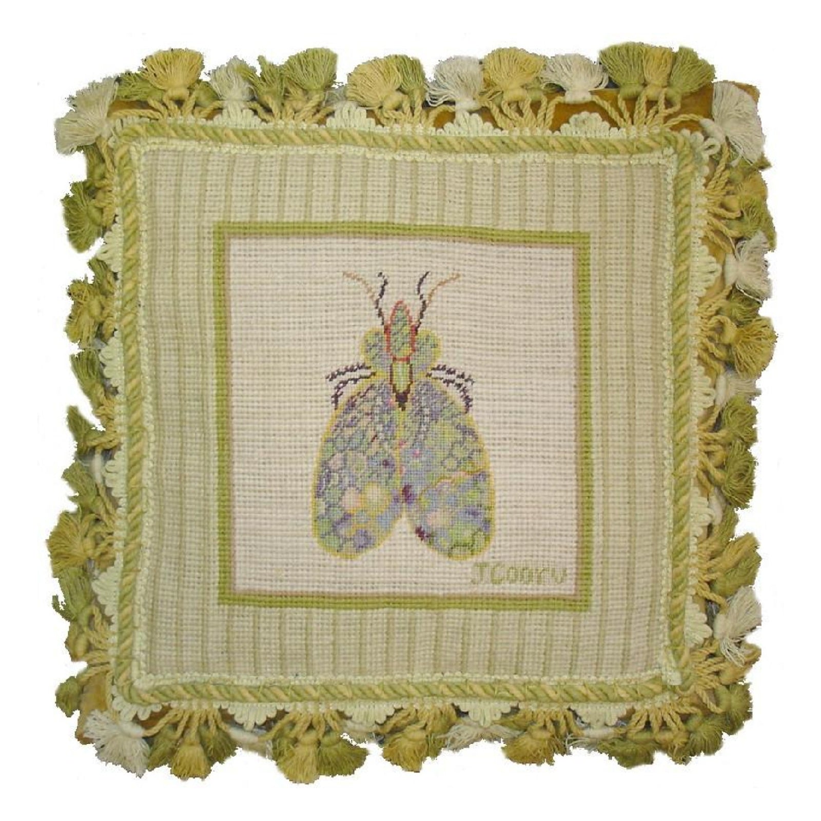 Handmade Wool Needlepoint Pillow Cover - Decorative Throw Cushion Cover - Vintage Floral Embroidery Design bee
