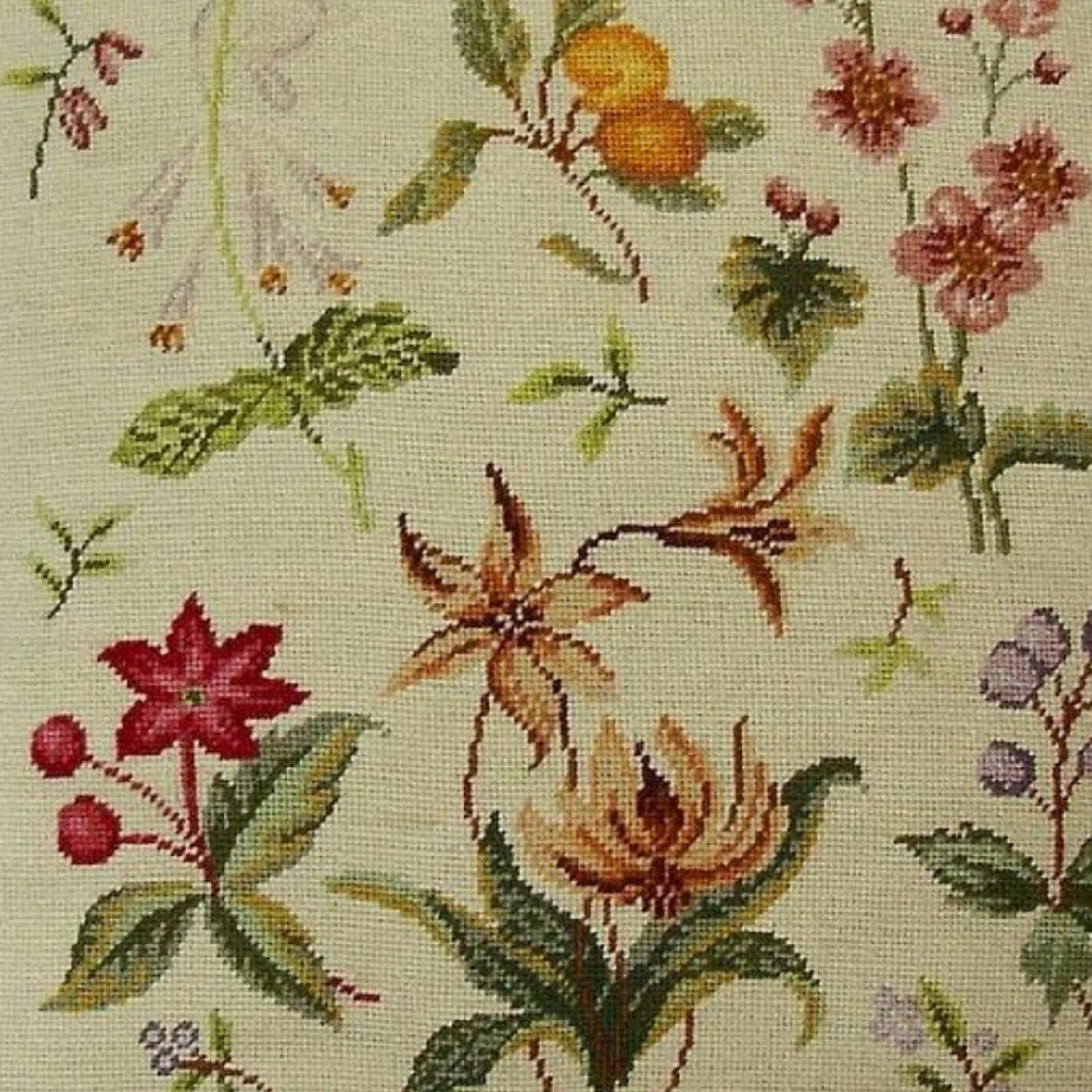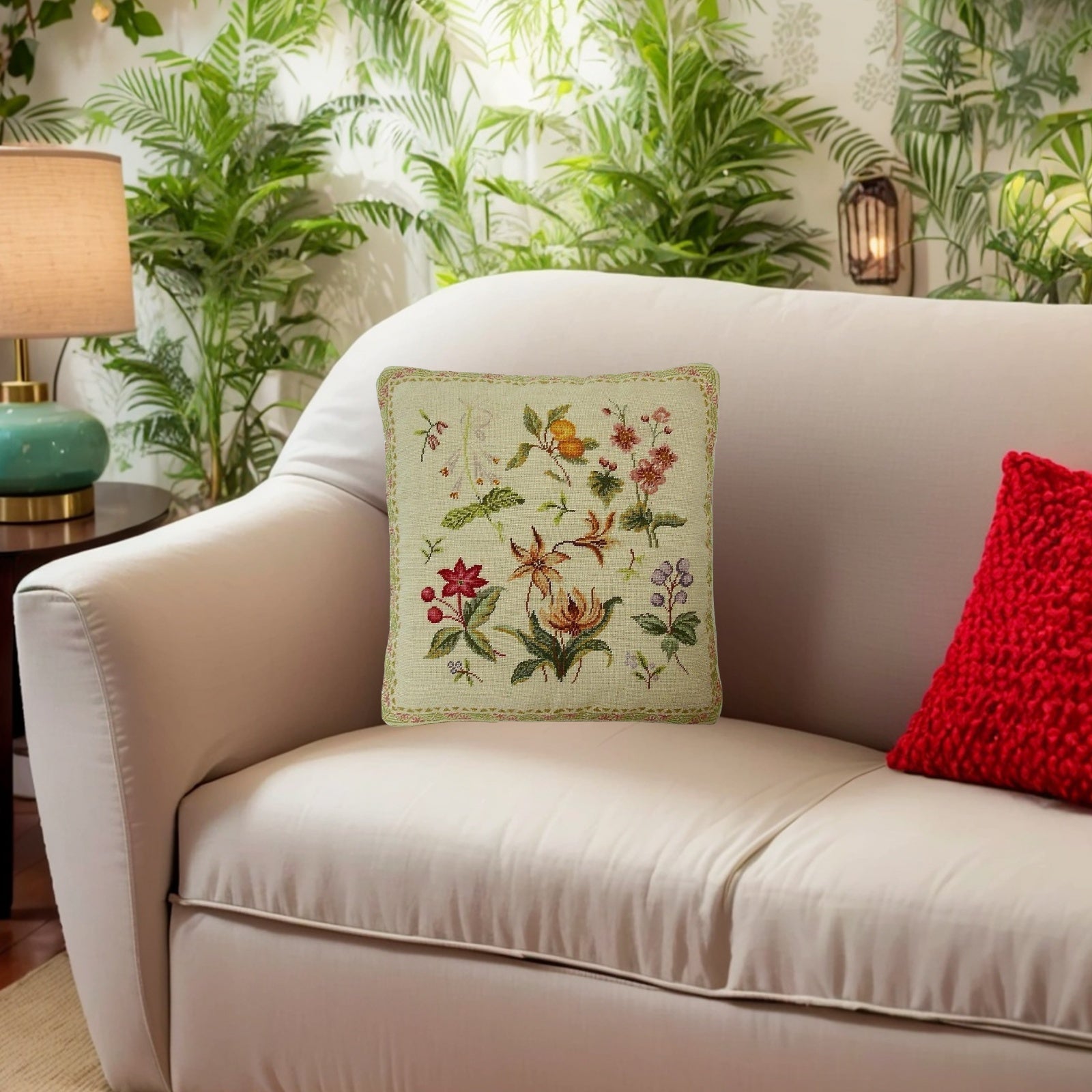 Handmade Wool Needlepoint Pillow Cover - Decorative Throw Cushion Cover - Vintage Floral Embroidery Design Herbers orange fruite
