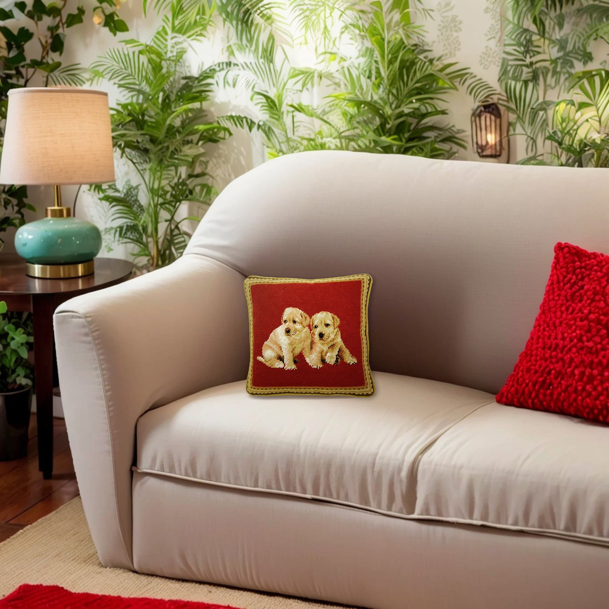 Handmade Wool Needlepoint Pillow Cover - Decorative Throw Cushion Cover - Vintage Floral Embroidery Design on 2 pappies head rest grosspoint