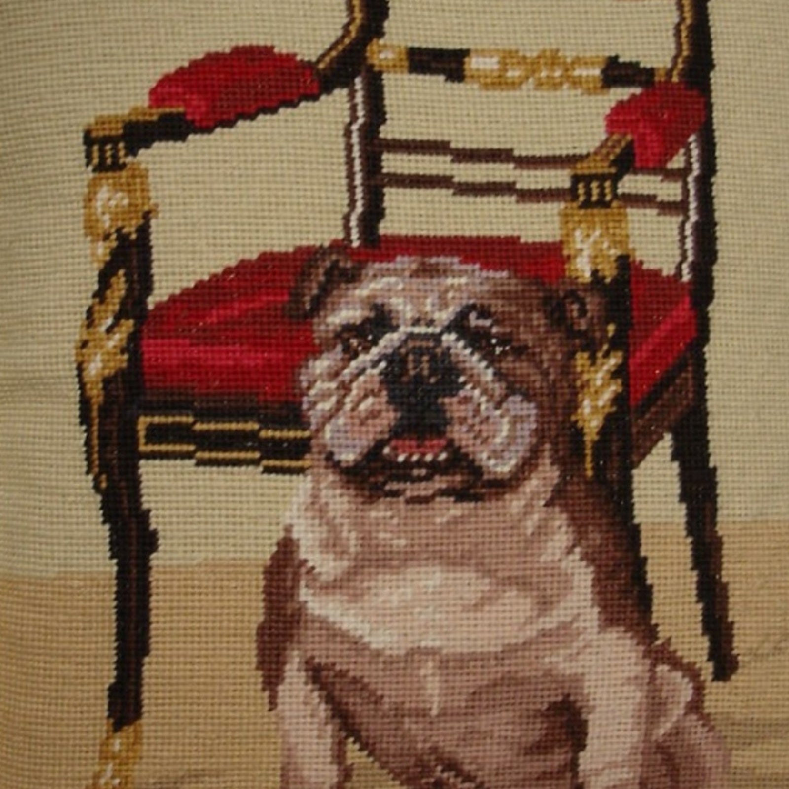 Handmade Wool Needlepoint Pillow Cover - Decorative Throw Cushion Cover - Vintage Floral Embroidery Design bull dog
