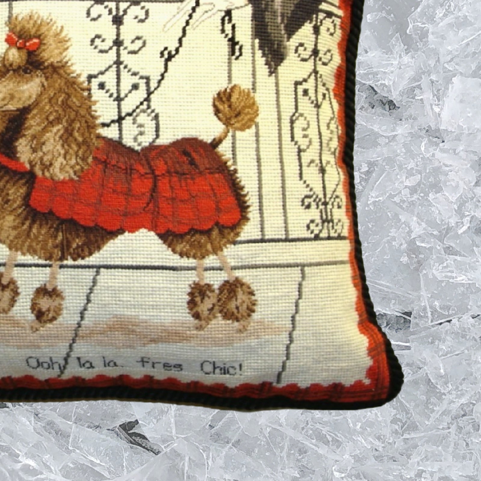 Handmade Wool Needlepoint Pillow Cover - Decorative Throw Cushion Cover - Vintage Floral Embroidery Design with cording c