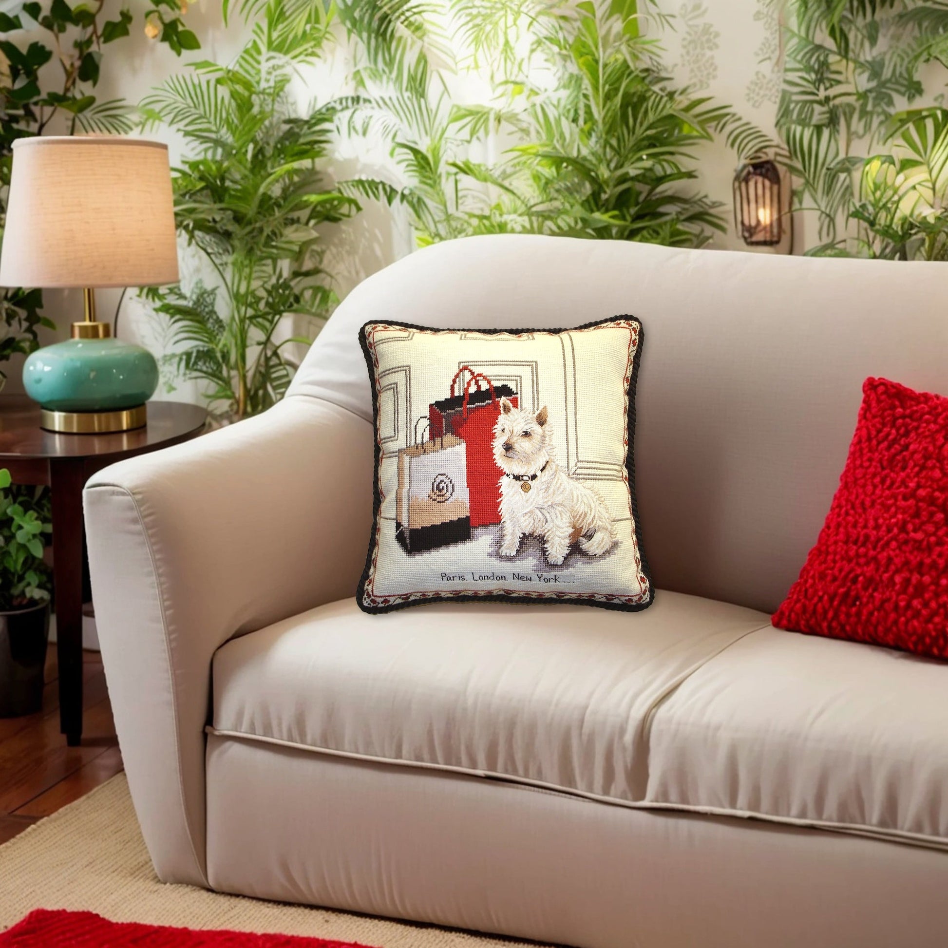 Handmade Wool Needlepoint Pillow Cover - Decorative Throw Cushion Cover - Vintage Floral Embroidery Design with cording