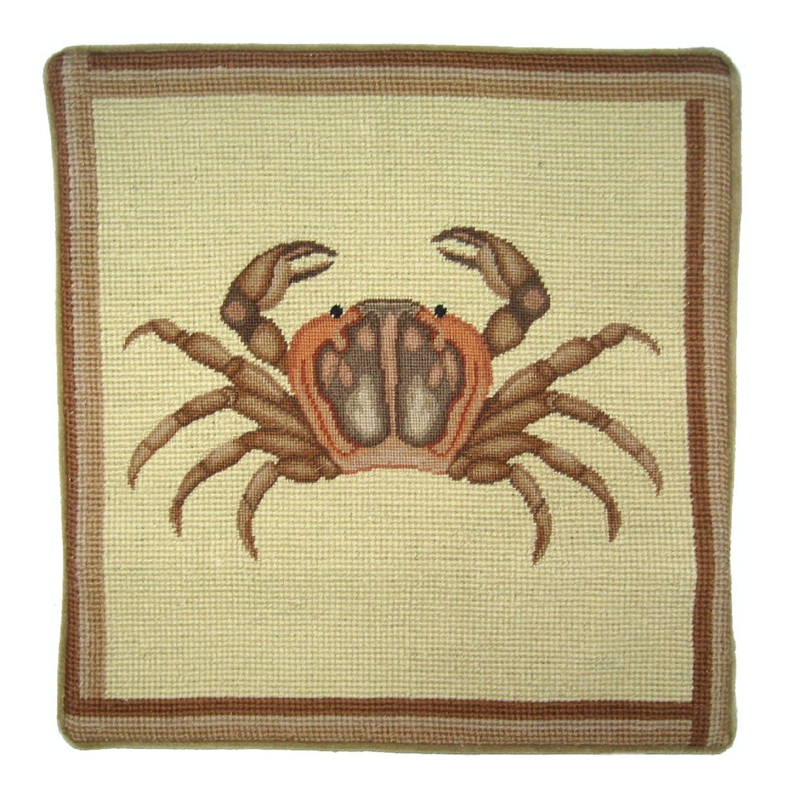Handmade Wool Needlepoint Pillow Cover - Decorative Throw Cushion Cover - Vintage Floral Embroidery Design brown crab