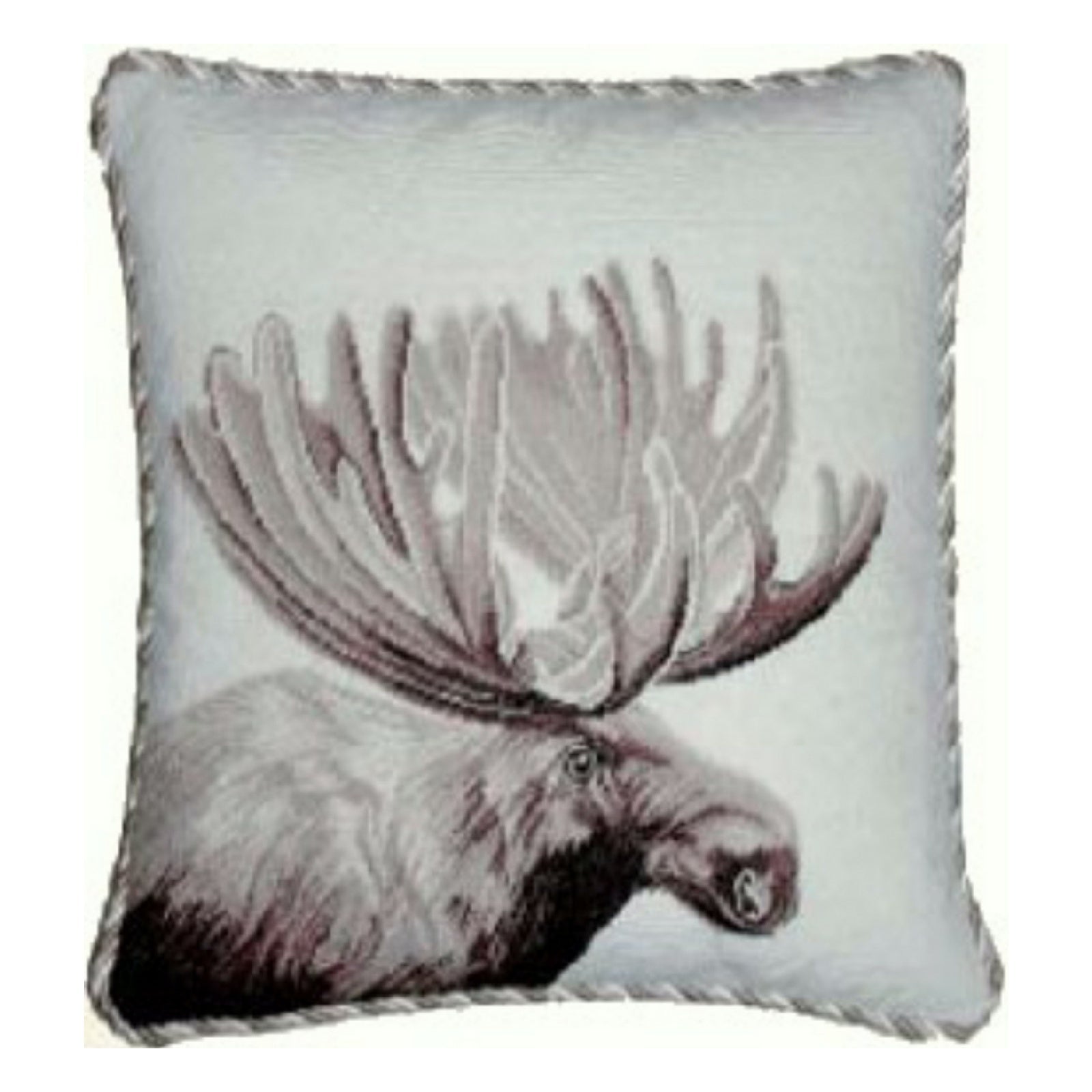Handmade Wool Needlepoint Pillow Cover - Decorative Throw Cushion Cover - Vintage Floral Embroidery Design Moose side with 3 color cording