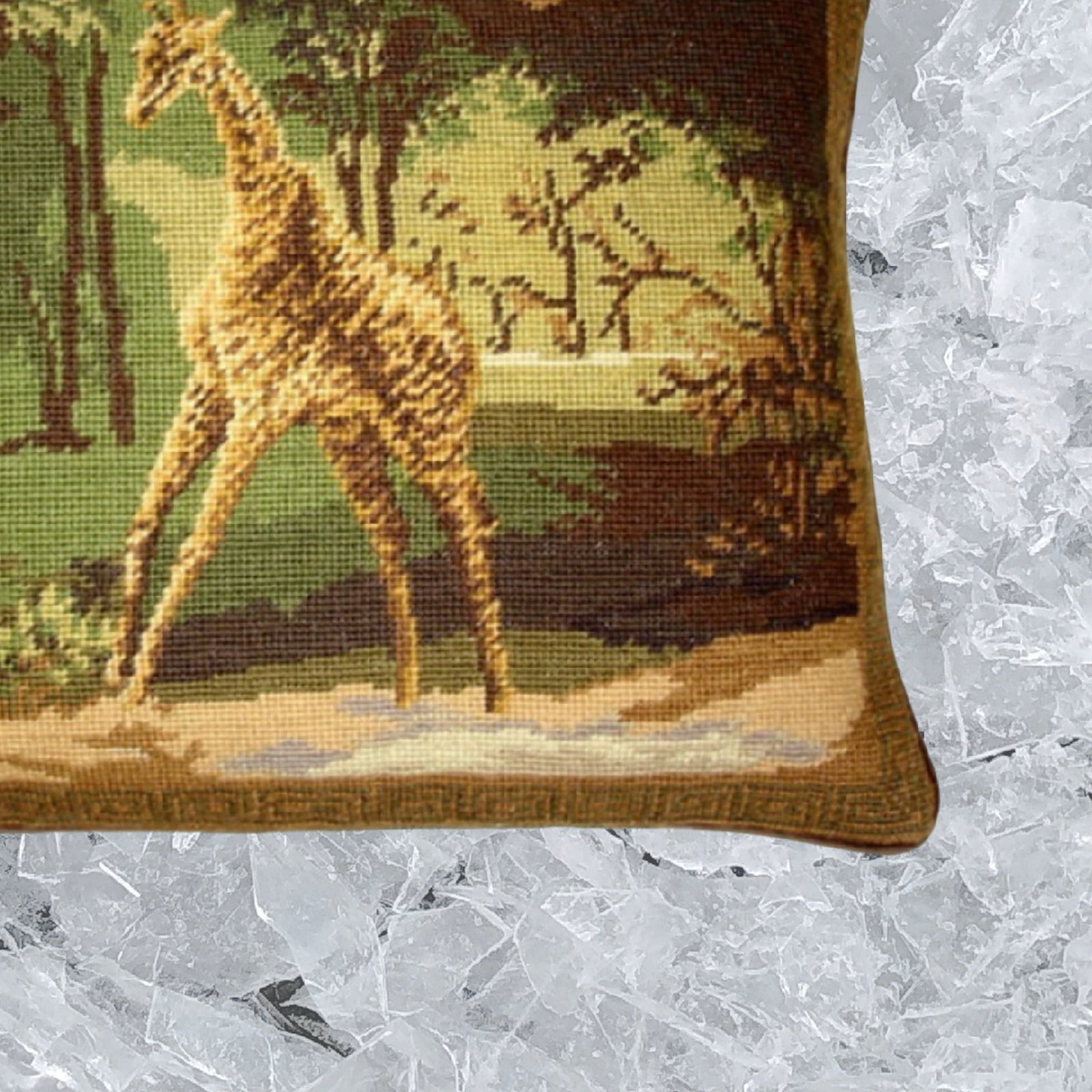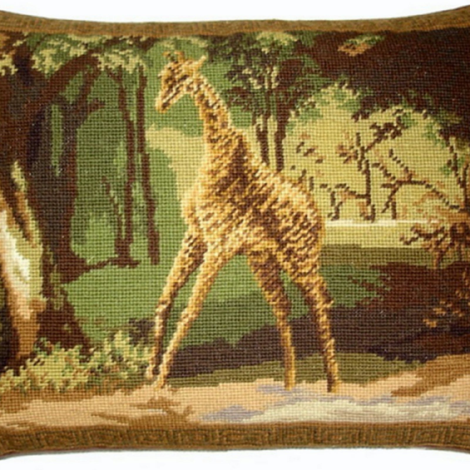 Handmade Wool Needlepoint Pillow Cover - Decorative Throw Cushion Cover - Vintage Floral Embroidery Design All Giraffe