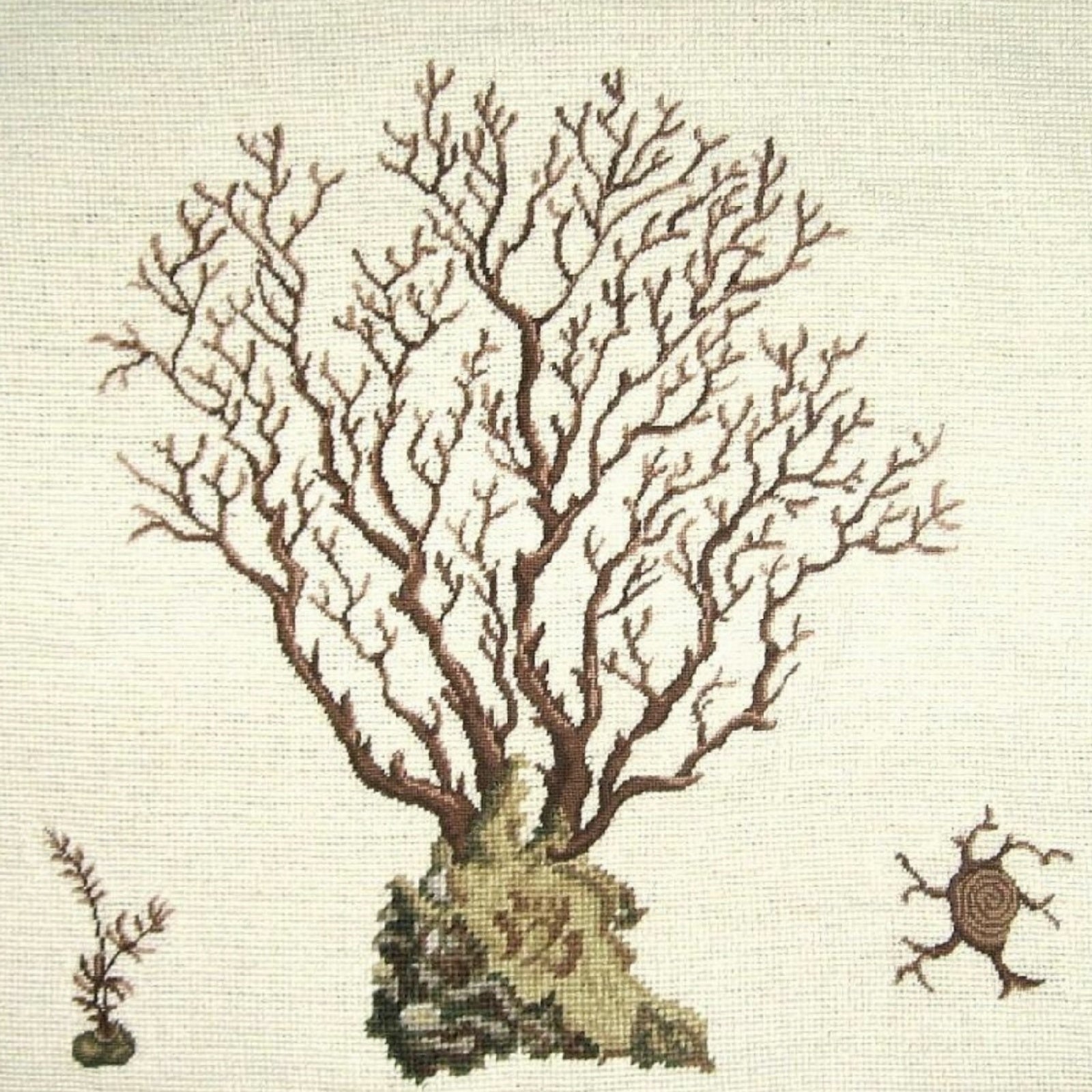 Handmade Wool Needlepoint Pillow Cover - Decorative Throw Cushion Cover - Vintage Floral Embroidery Design brown Marestail with 3 color cording