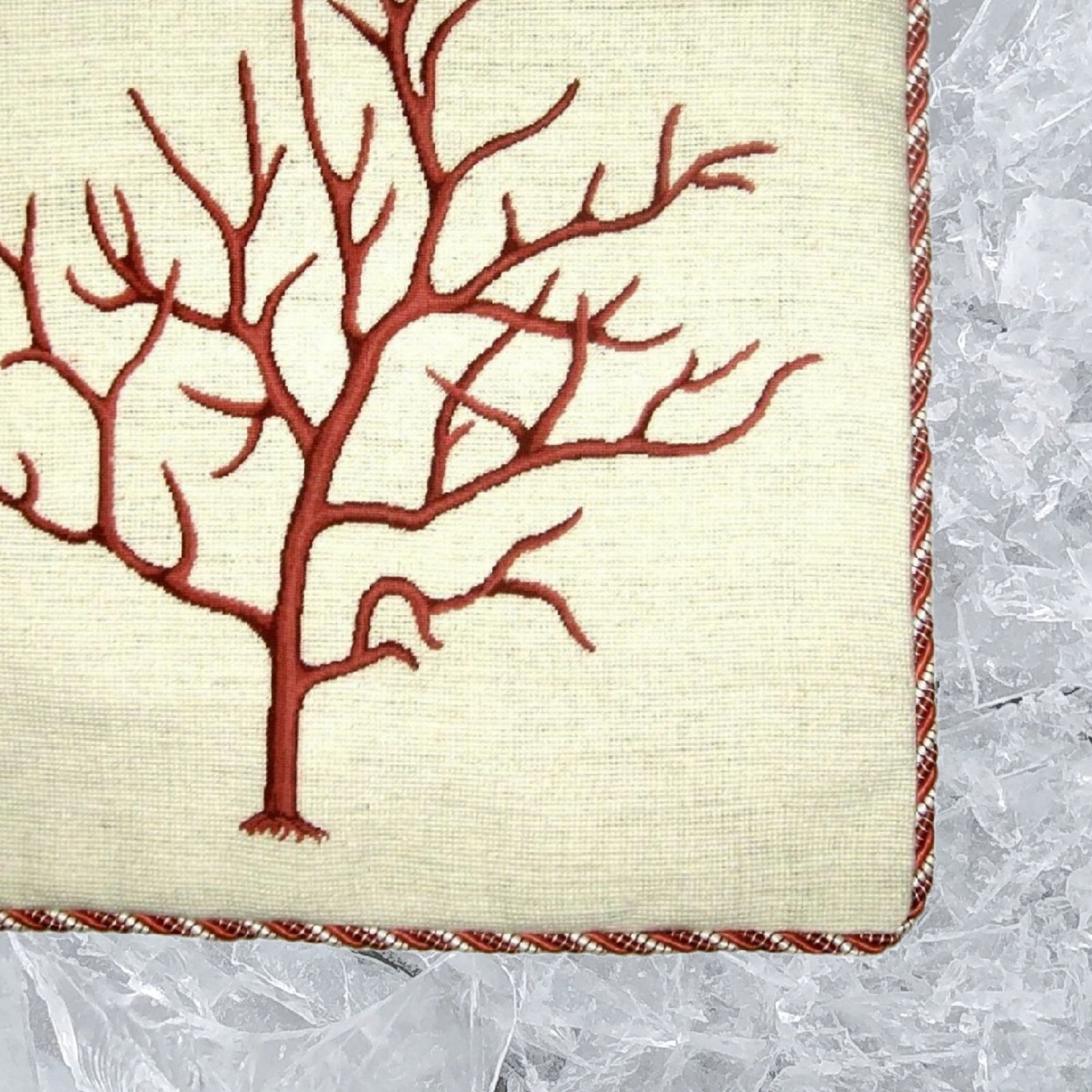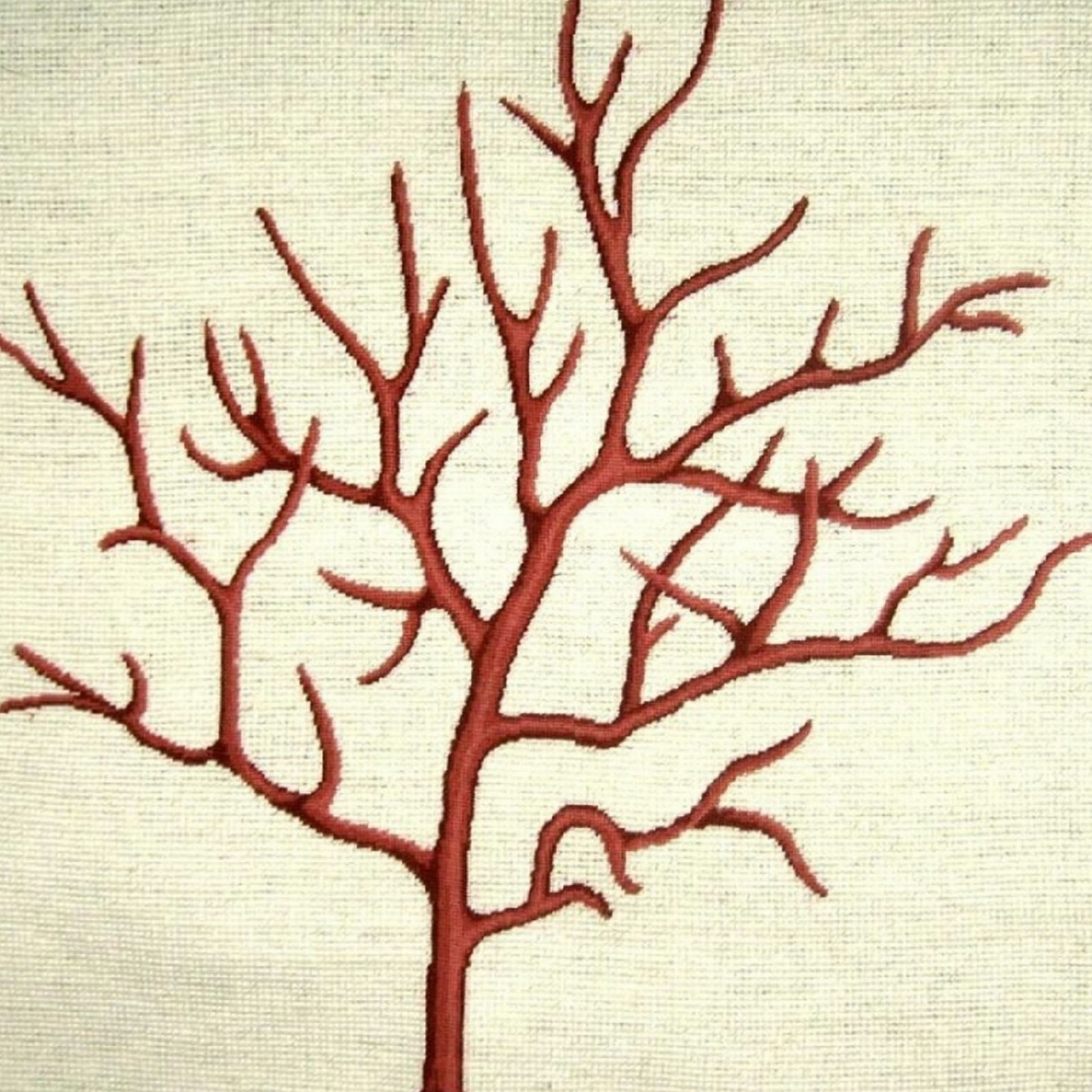 Handmade Wool Needlepoint Pillow Cover - Decorative Throw Cushion Cover - Vintage Floral Embroidery Design red small coral with cording