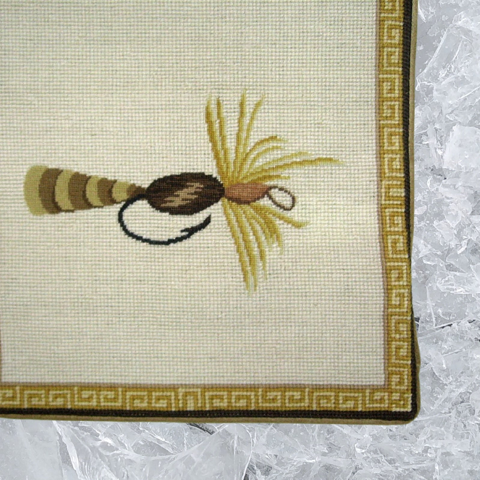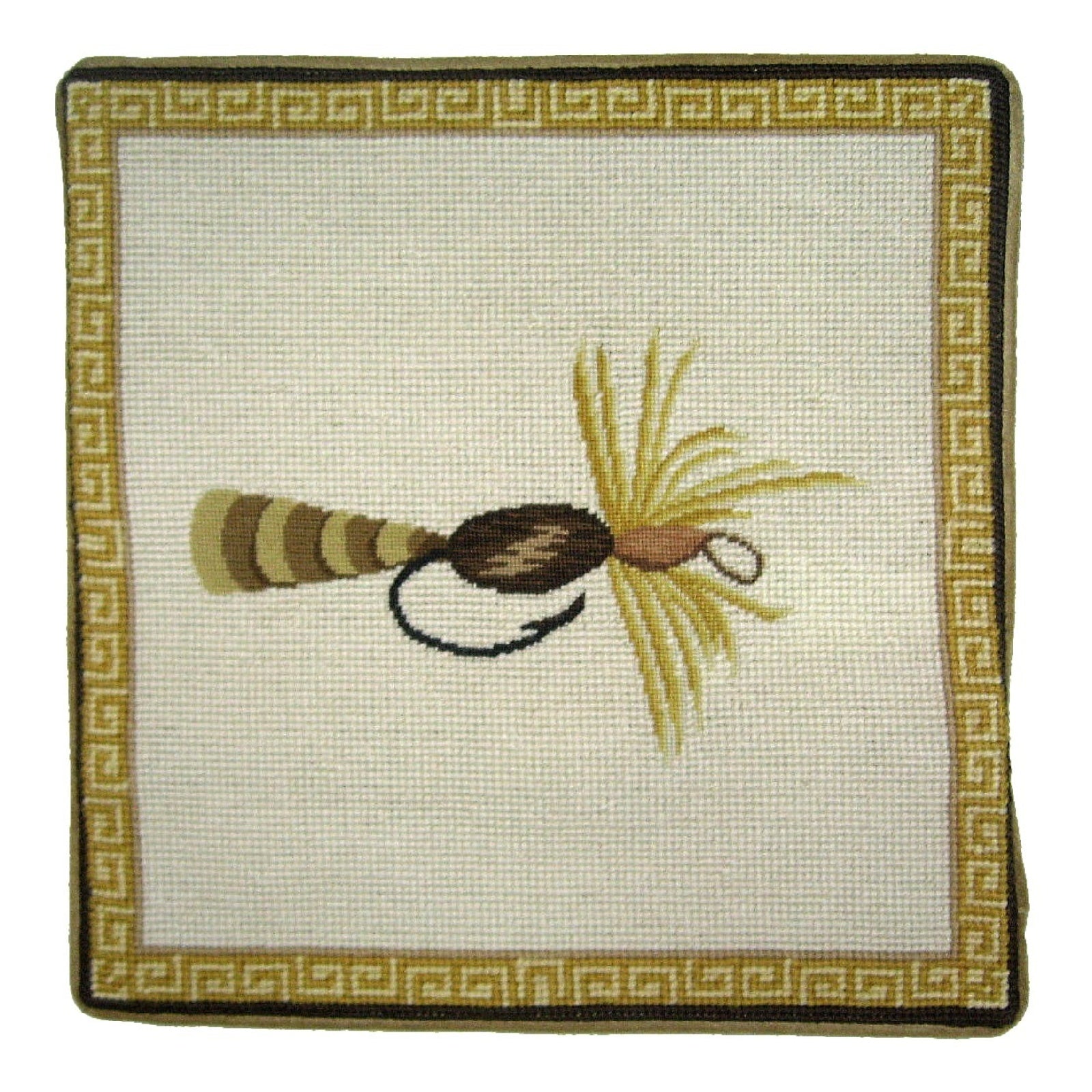 Handmade Wool Needlepoint Pillow Cover - Decorative Throw Cushion Cover - Vintage Floral Embroidery Design yellow-brown fish-hook
