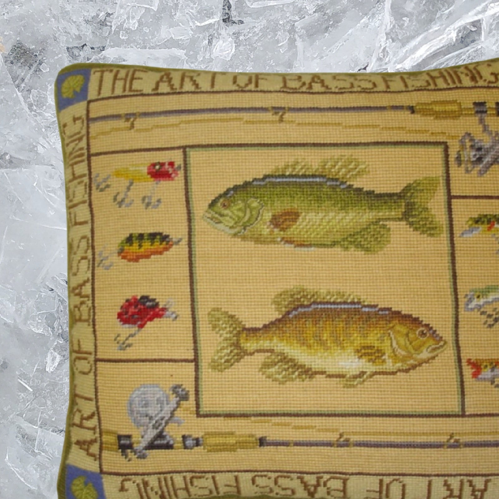 Handmade Wool Needlepoint Pillow Cover - Decorative Throw Cushion Cover - Vintage Floral Embroidery Design James Wienss designThe art of bass fishing, &