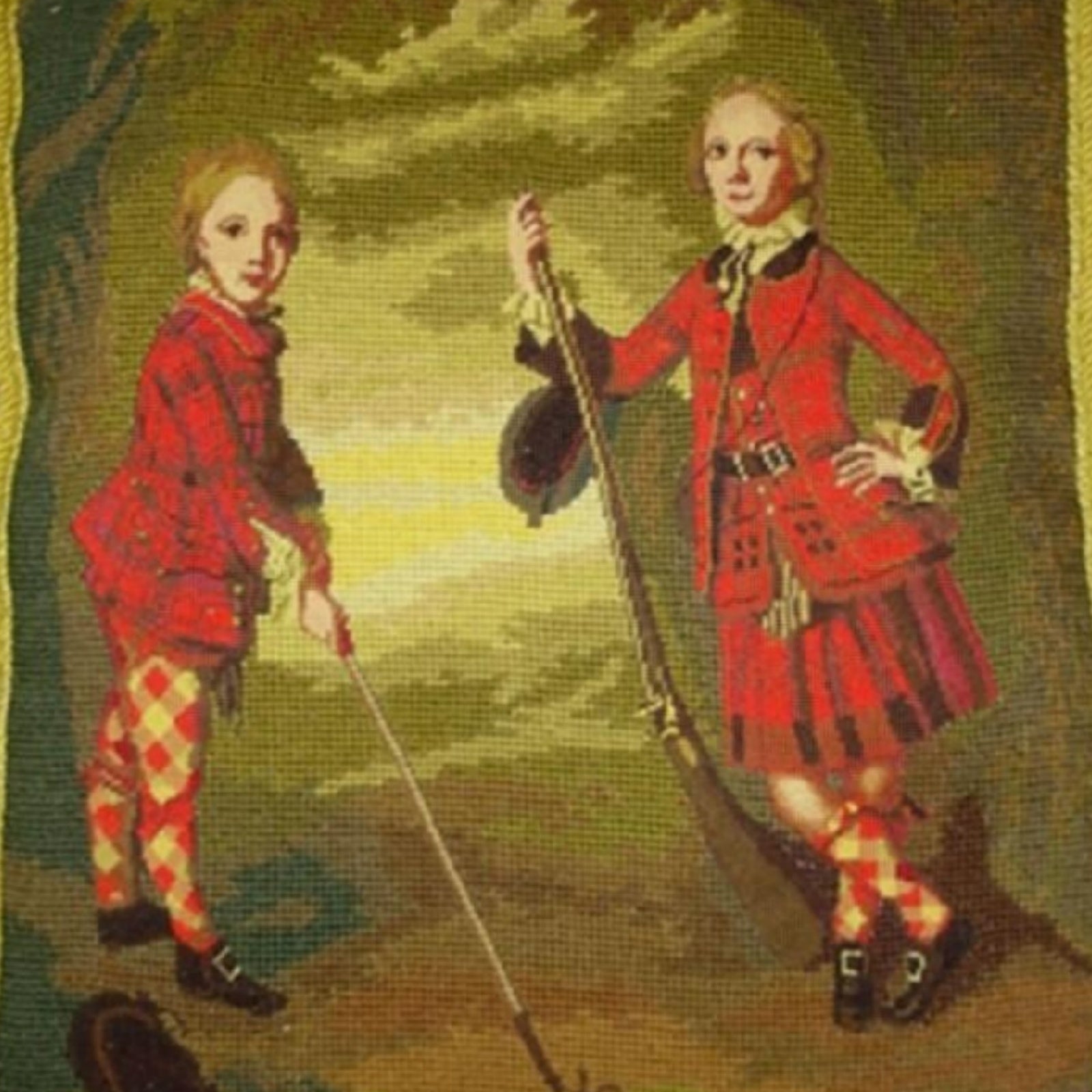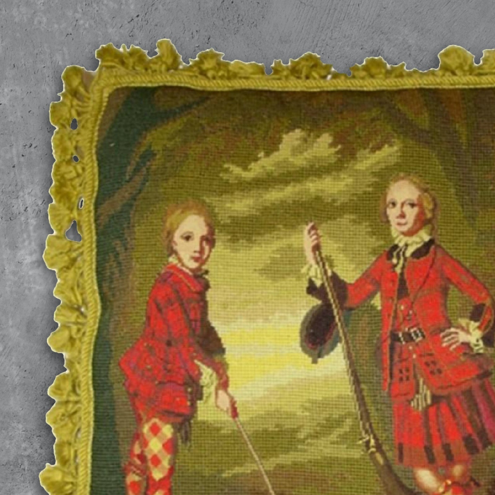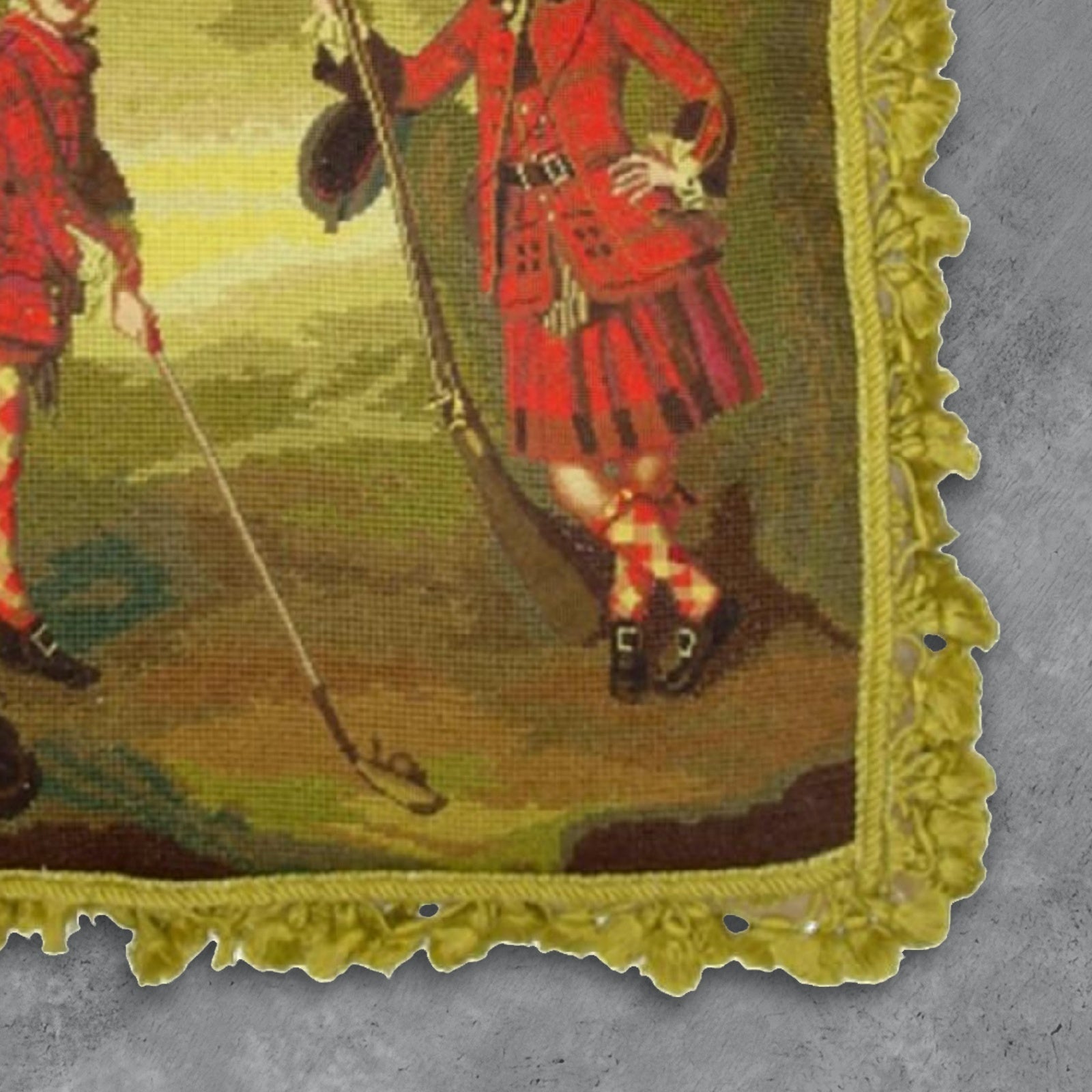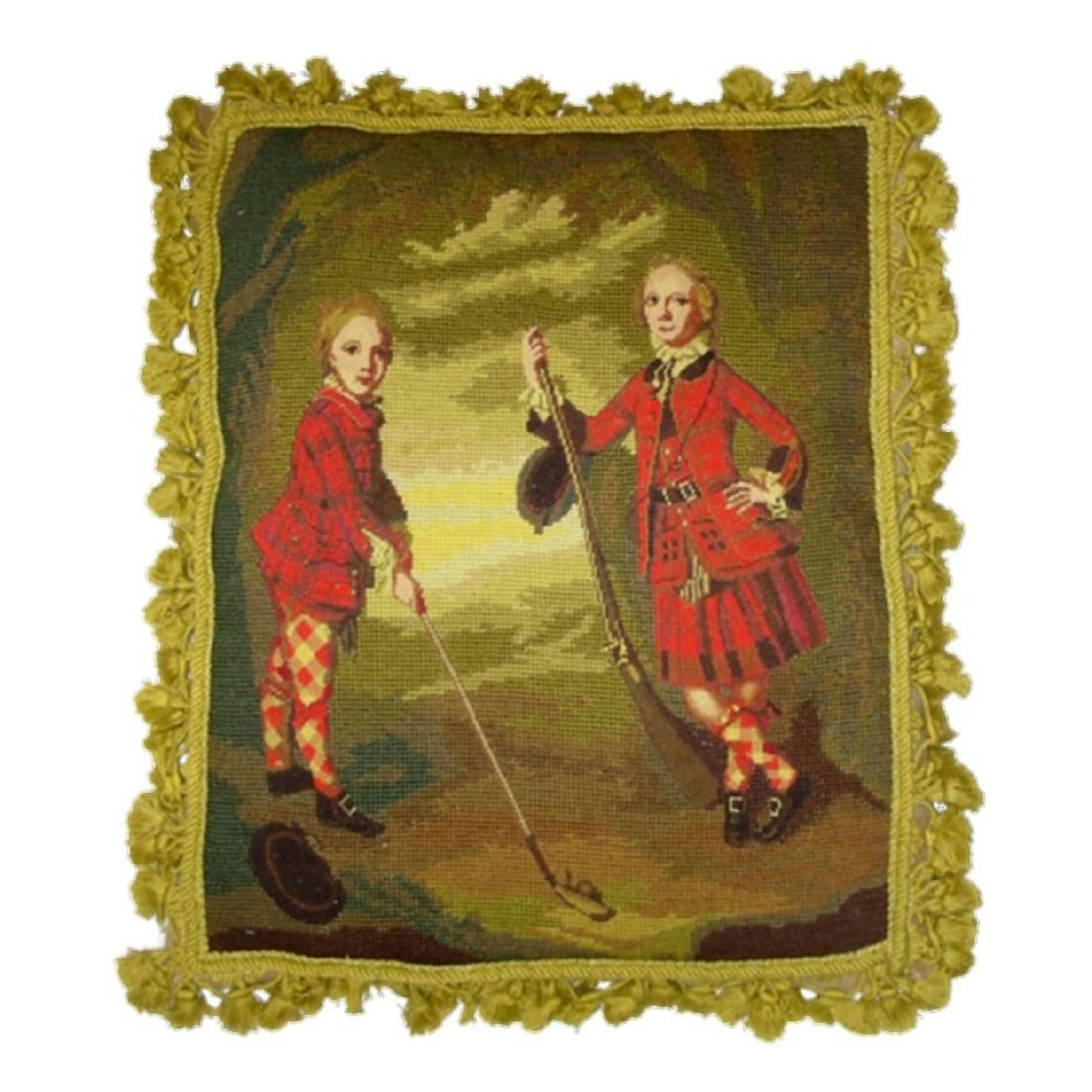 Handmade Wool Needlepoint Pillow Cover - Decorative Throw Cushion Cover - Vintage Floral Embroidery Design Irish Golfers background with tassels