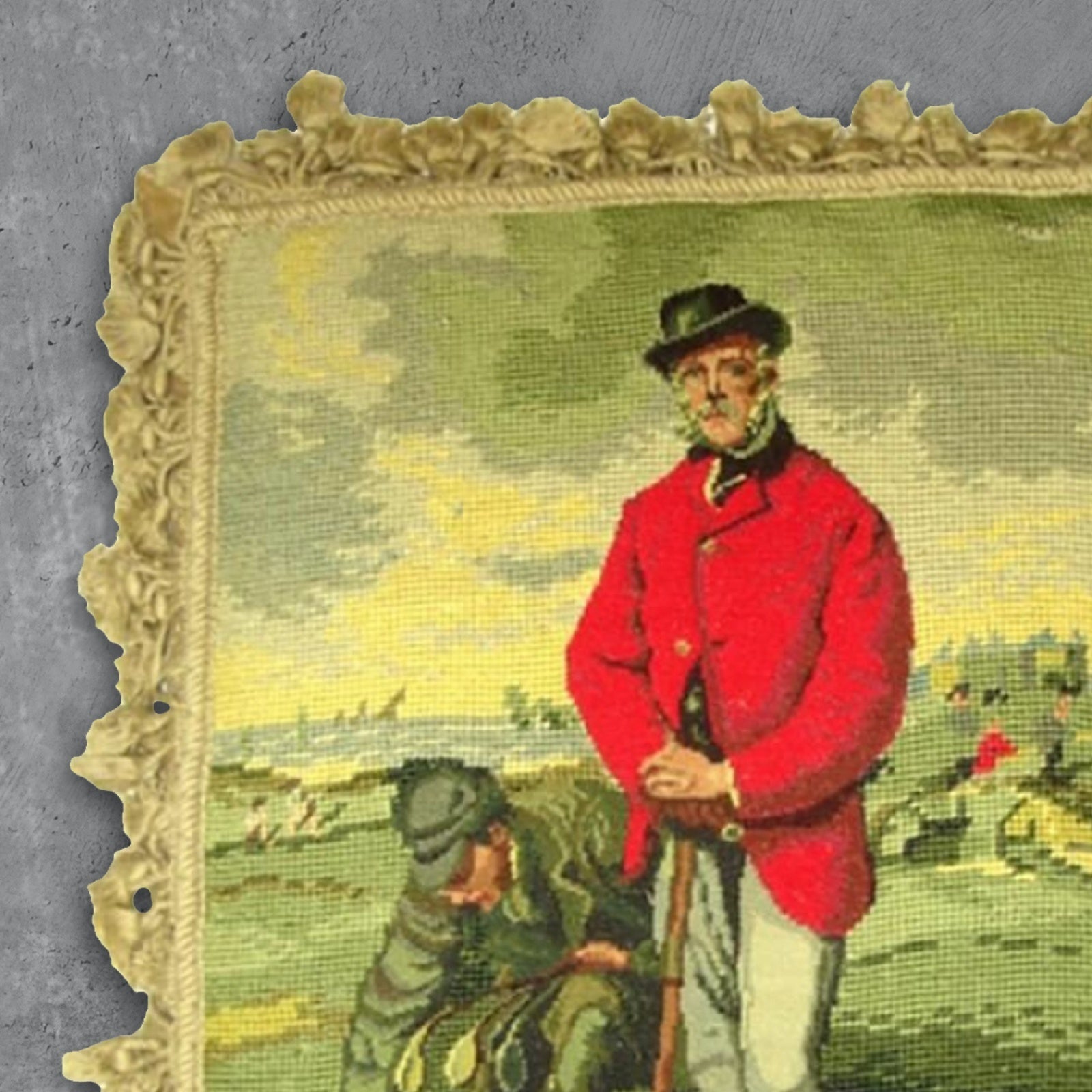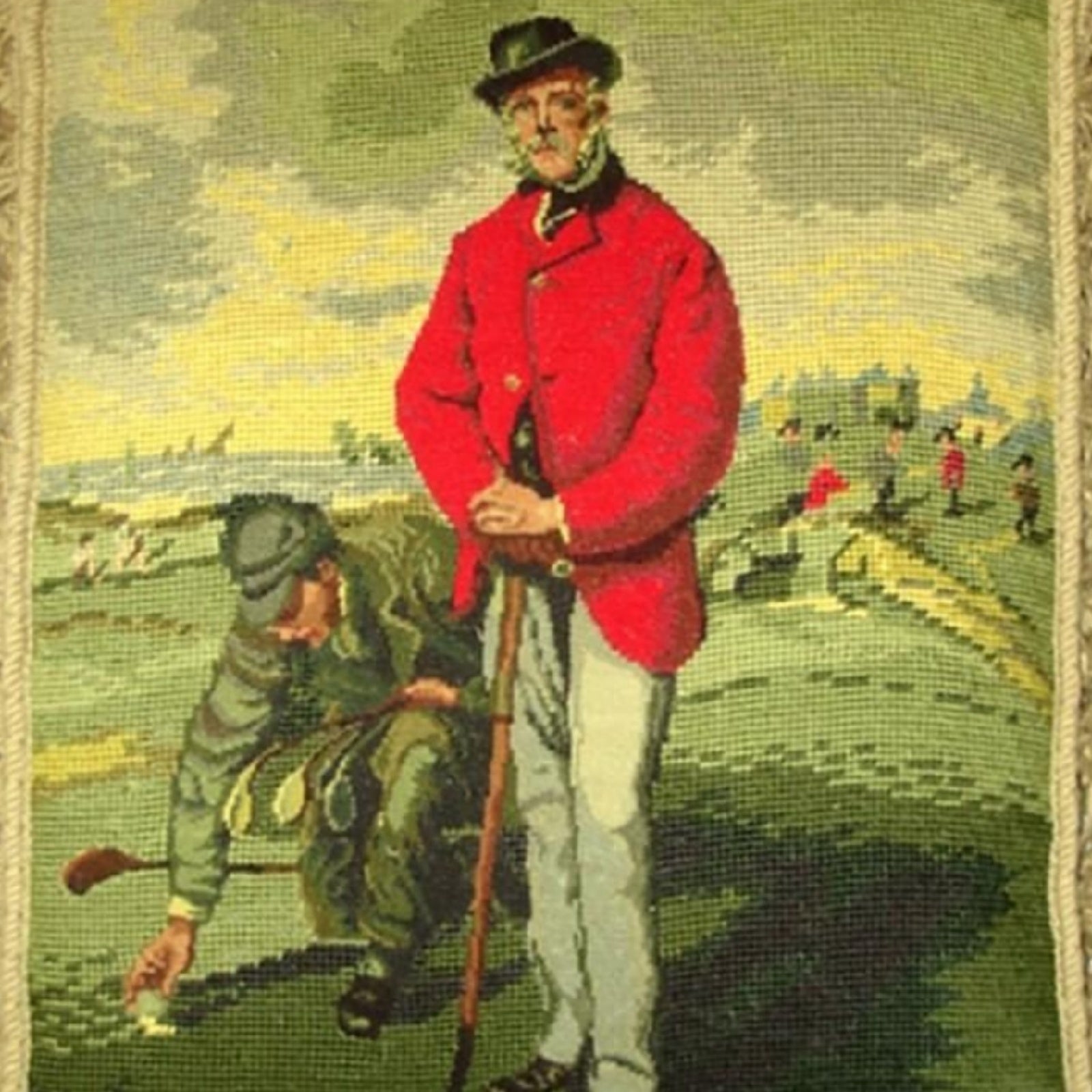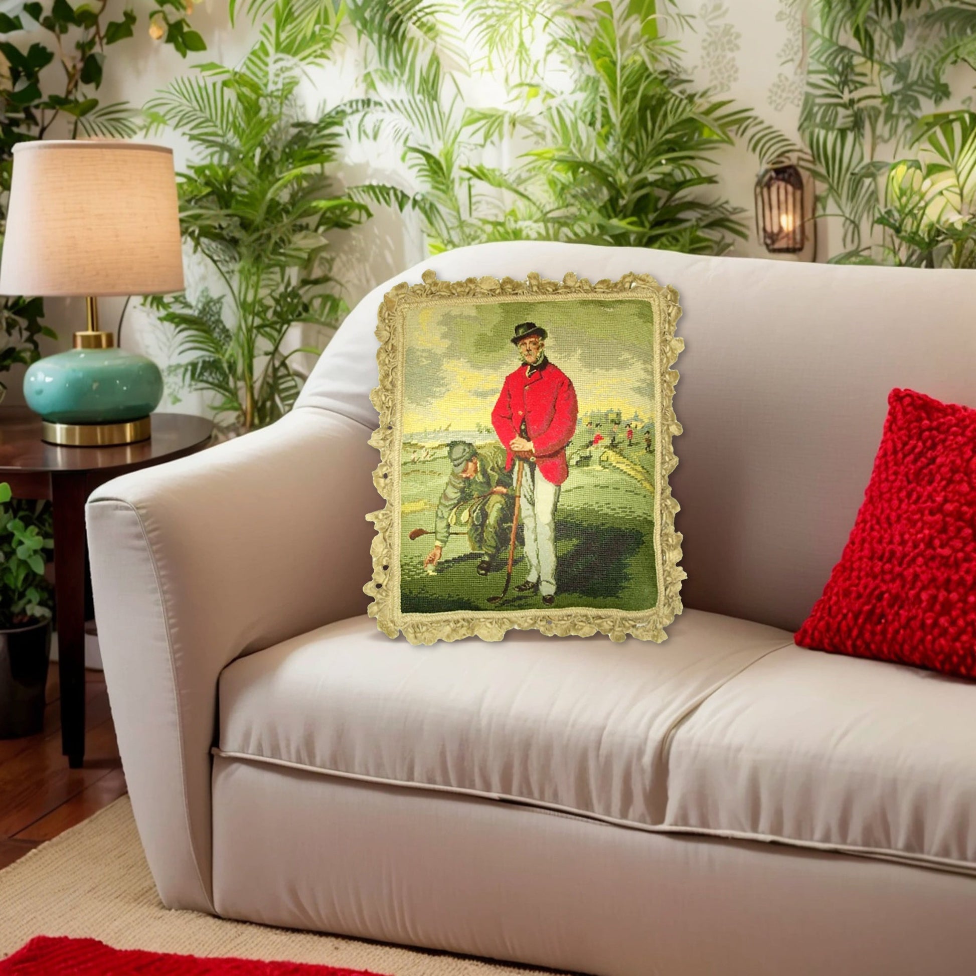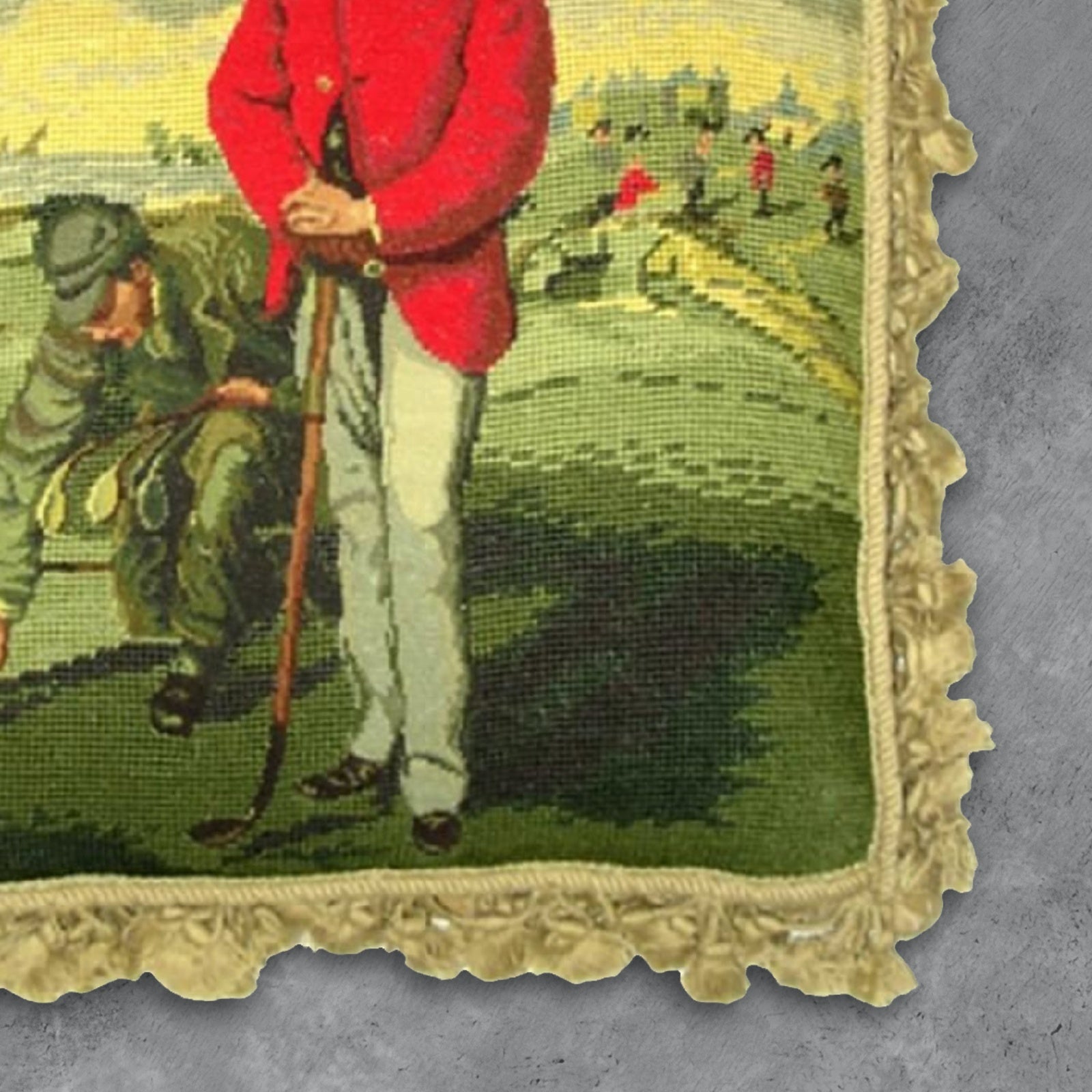 Handmade Wool Needlepoint Pillow Cover - Decorative Throw Cushion Cover - Vintage Floral Embroidery Design Uncle Tom golfers background with tassels