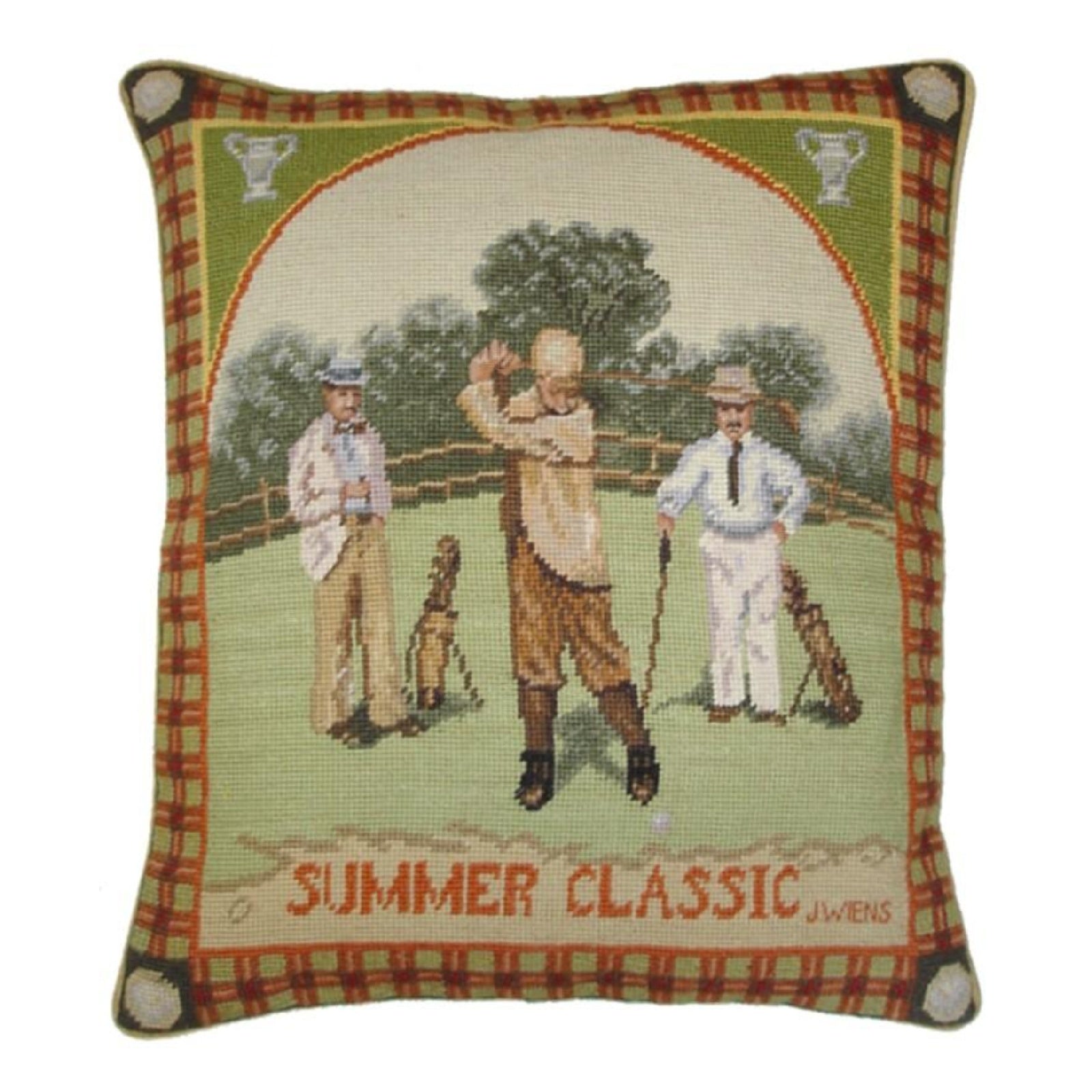 Handmade Wool Needlepoint Pillow Cover - Decorative Throw Cushion Cover - Vintage Floral Embroidery Design James Wiens Summer Classic men golf