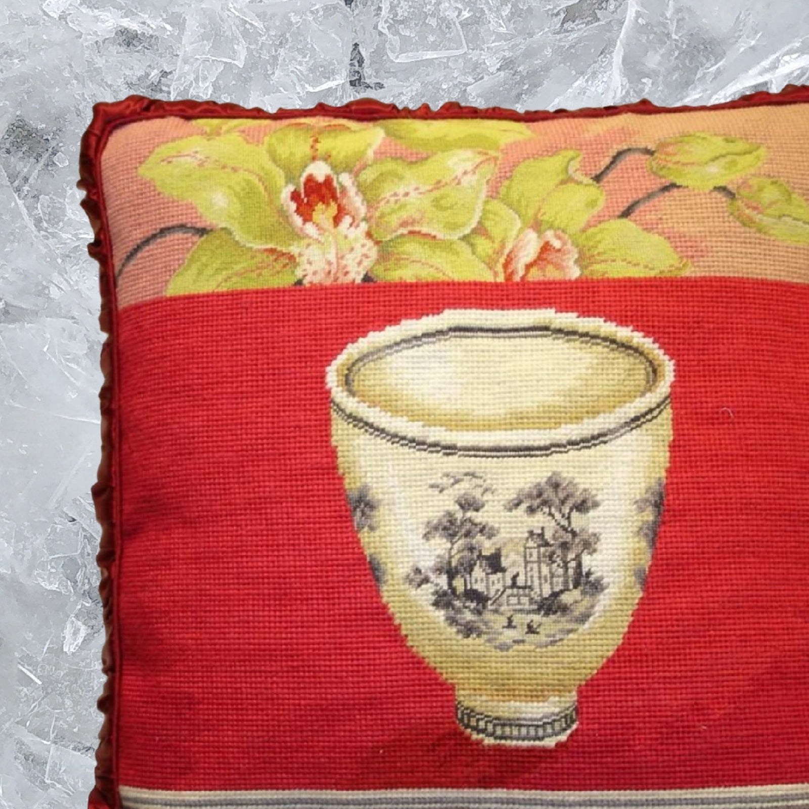 Handmade Wool Needlepoint Pillow Cover - Decorative Throw Cushion Cover - Vintage Floral Embroidery Design Kathryn White Design O