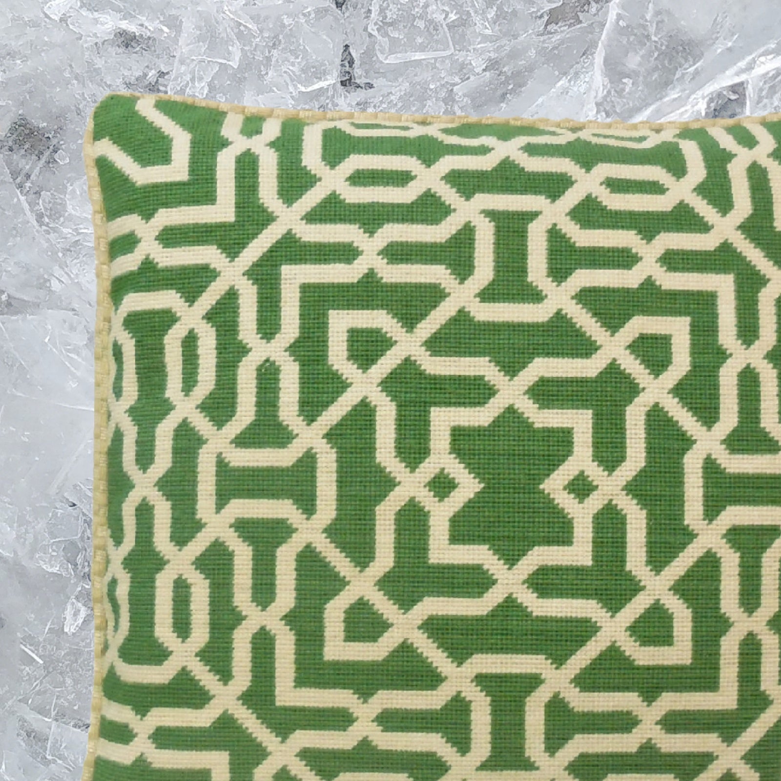 Handmade Wool Needlepoint Pillow Cover - Decorative Throw Cushion Cover - Vintage Floral Embroidery Design green small window designs checker cording