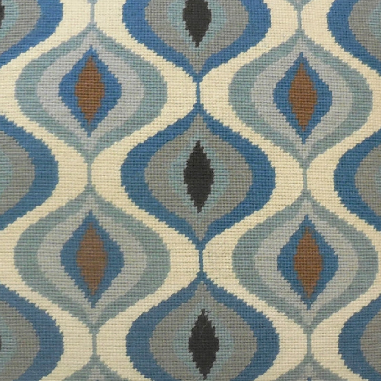 Handmade Wool Needlepoint Pillow Cover - Decorative Throw Cushion Cover - Vintage Floral Embroidery Design blue water drop pattern checker cording