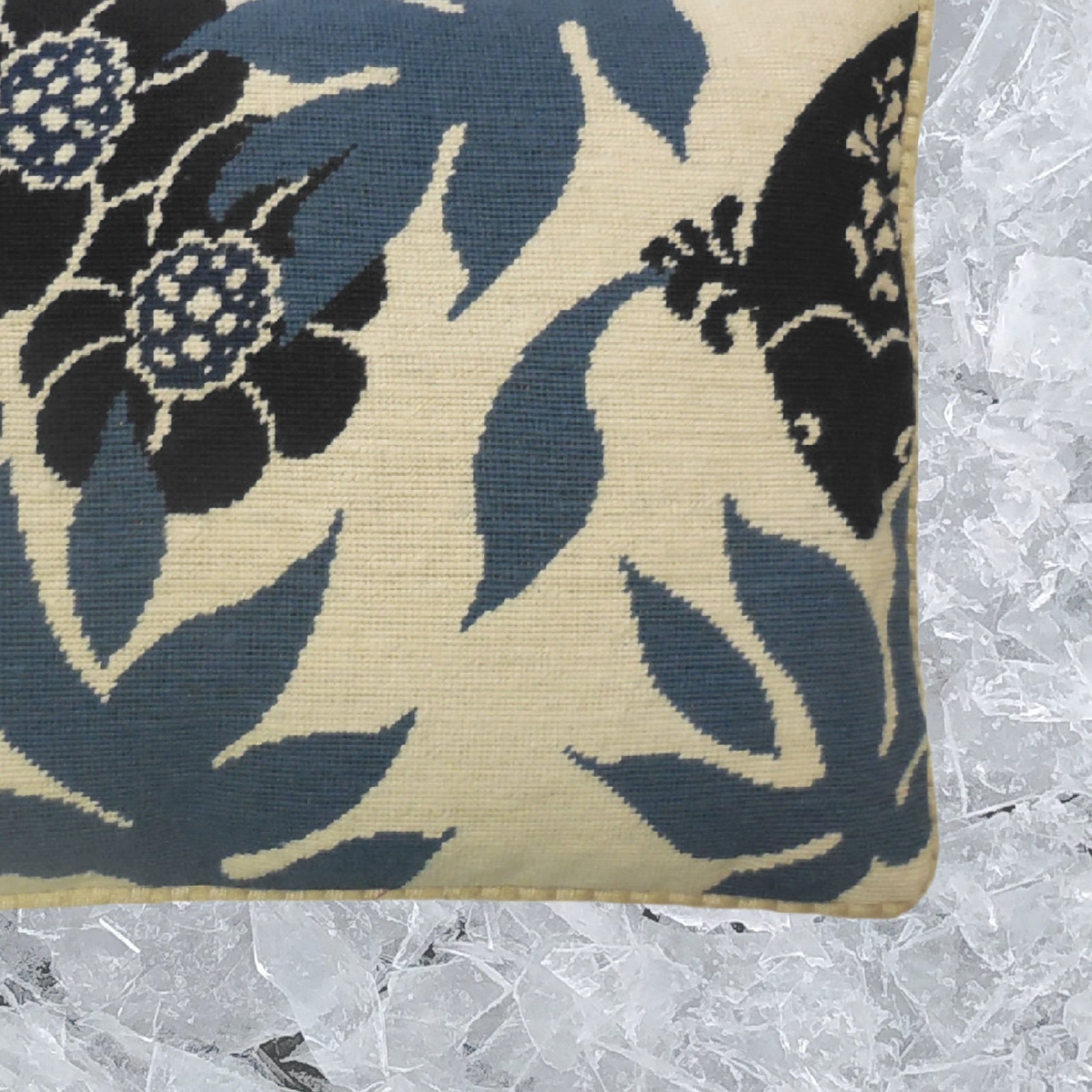 Handmade Wool Needlepoint Pillow Cover - Decorative Throw Cushion Cover - Vintage Floral Embroidery Design blue Koi ship checker cording