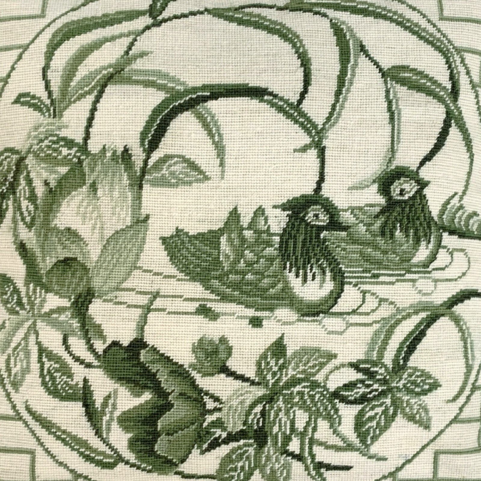 Handmade Wool Needlepoint Pillow Cover - Decorative Throw Cushion Cover - Vintage Floral Embroidery Design green Manderain Ducks lotus flower with tassels