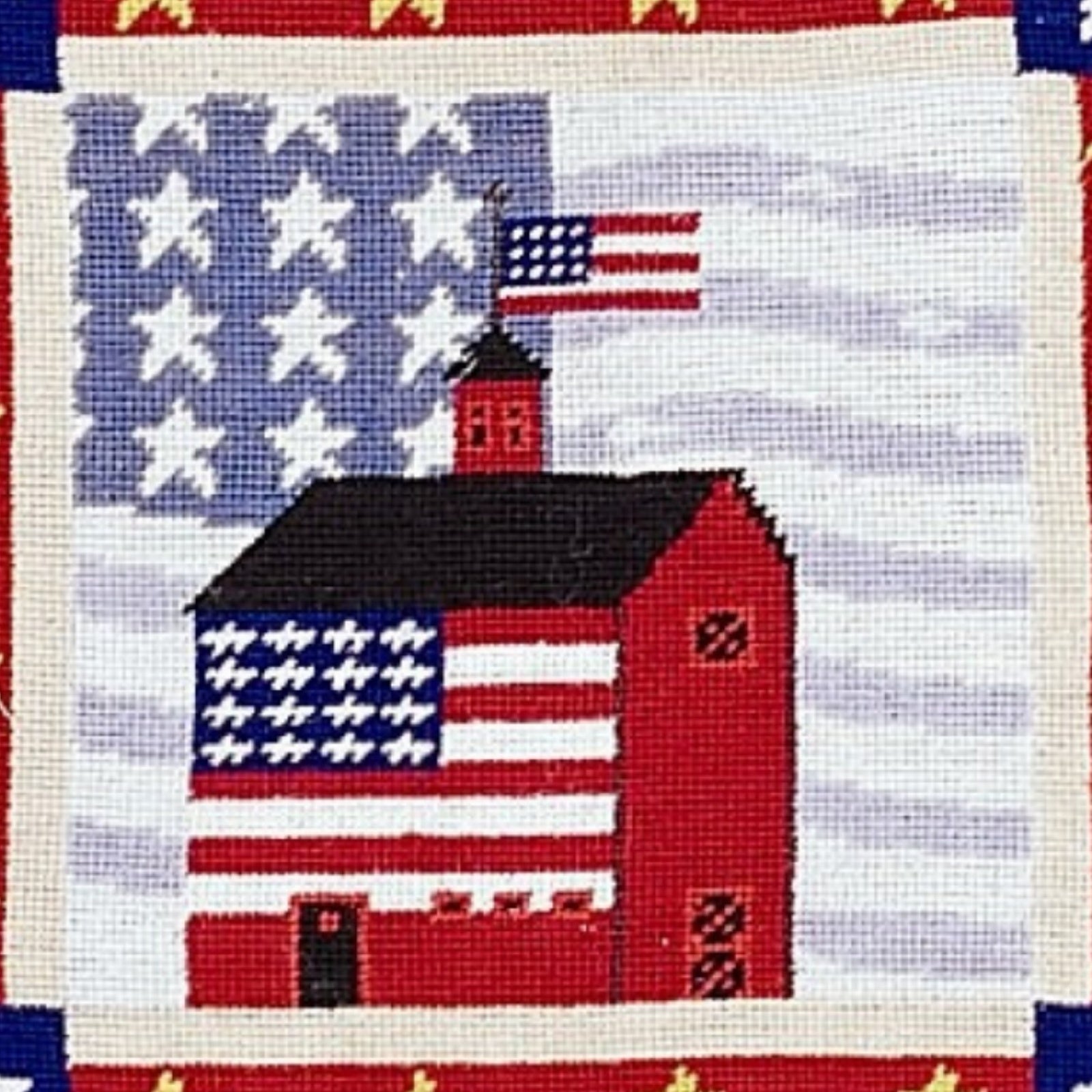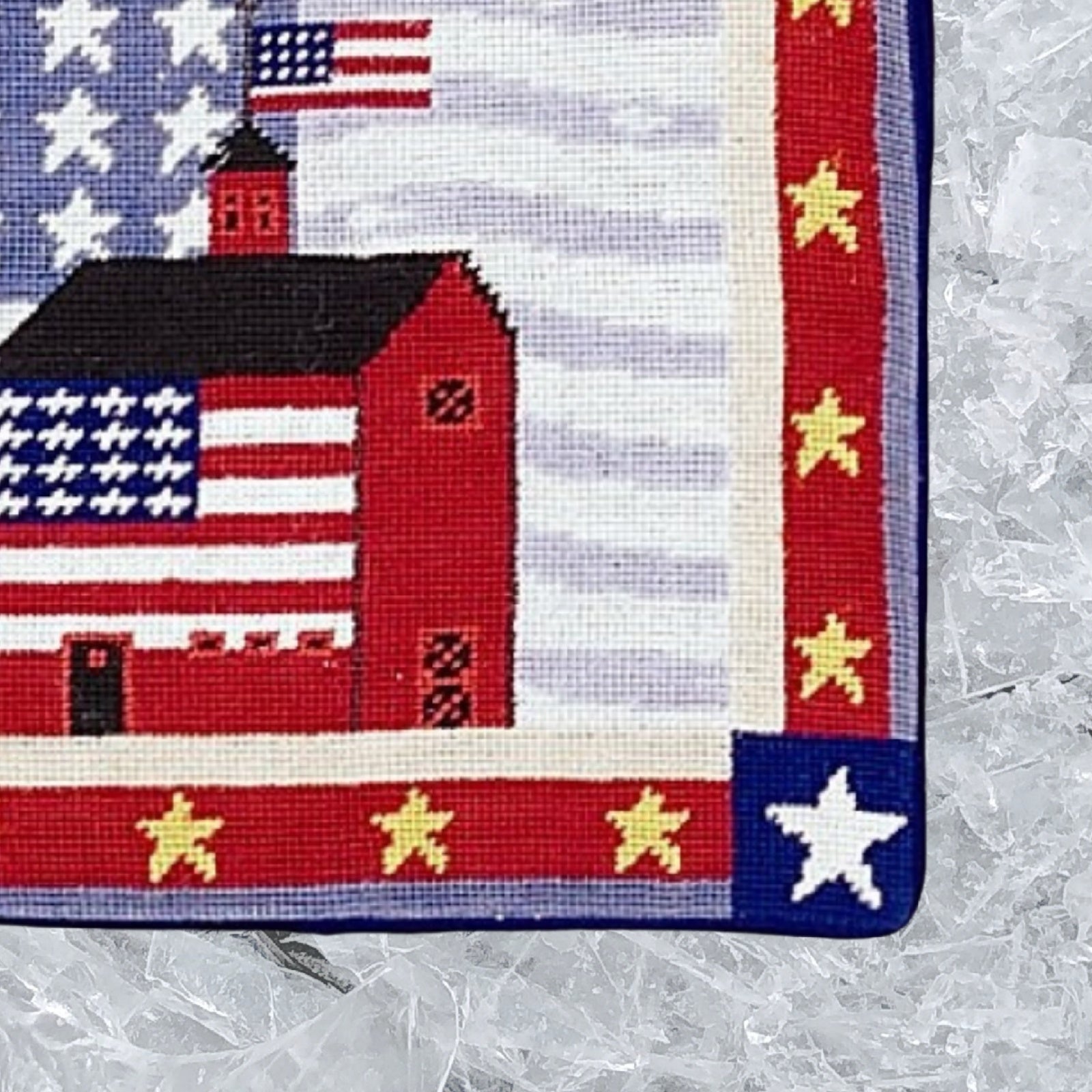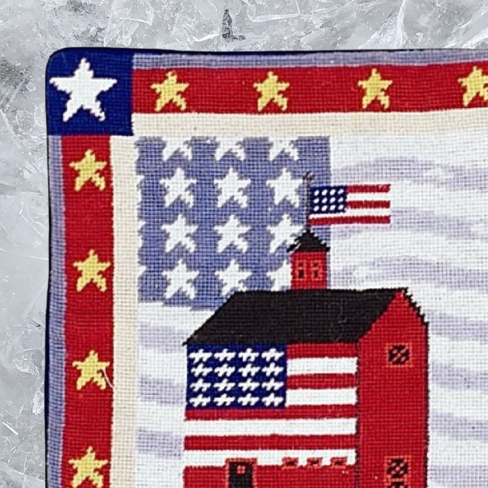 Handmade Wool Needlepoint Pillow Cover - Decorative Throw Cushion Cover - Vintage Floral Embroidery Design red house gold stars around