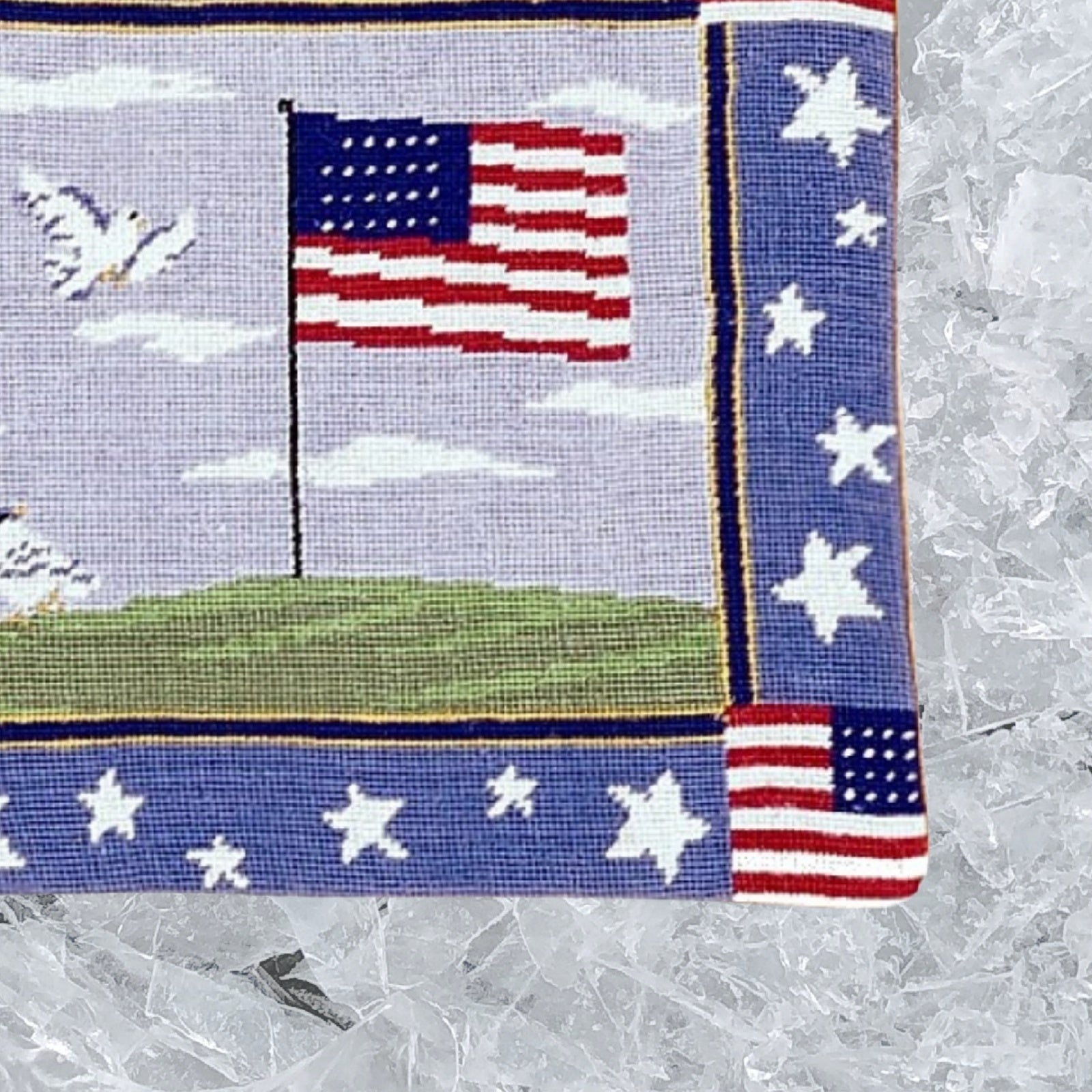 Handmade Wool Needlepoint Pillow Cover - Decorative Throw Cushion Cover - Vintage Floral Embroidery Design center flag & 4 corner 4 flags