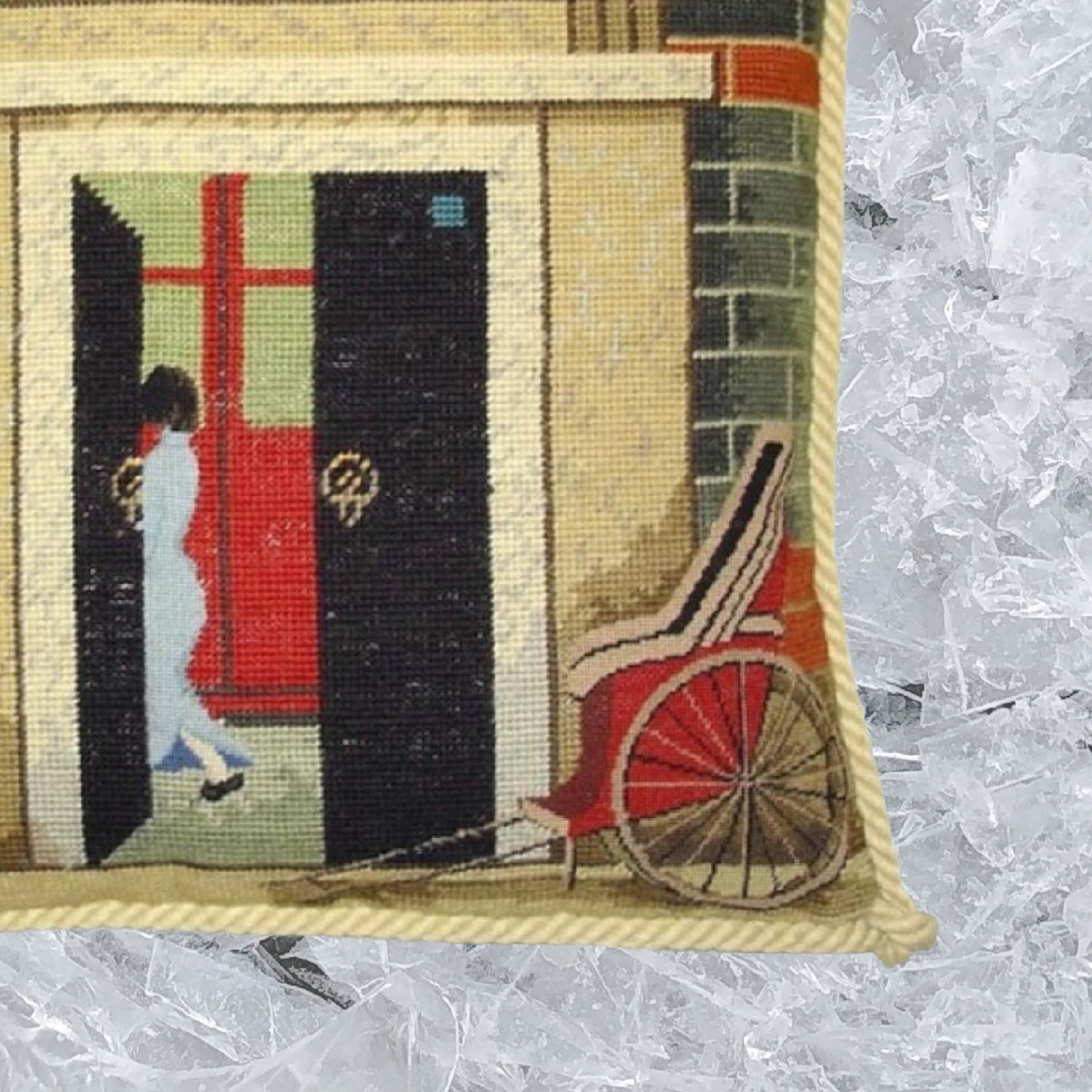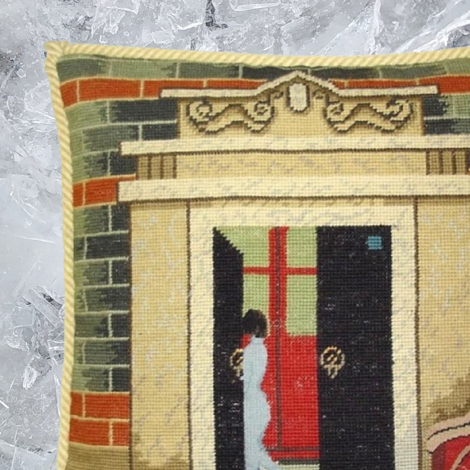 Handmade Wool Needlepoint Pillow Cover - Decorative Throw Cushion Cover - Vintage Floral Embroidery Design Shanghai ShiKuMen with cording II