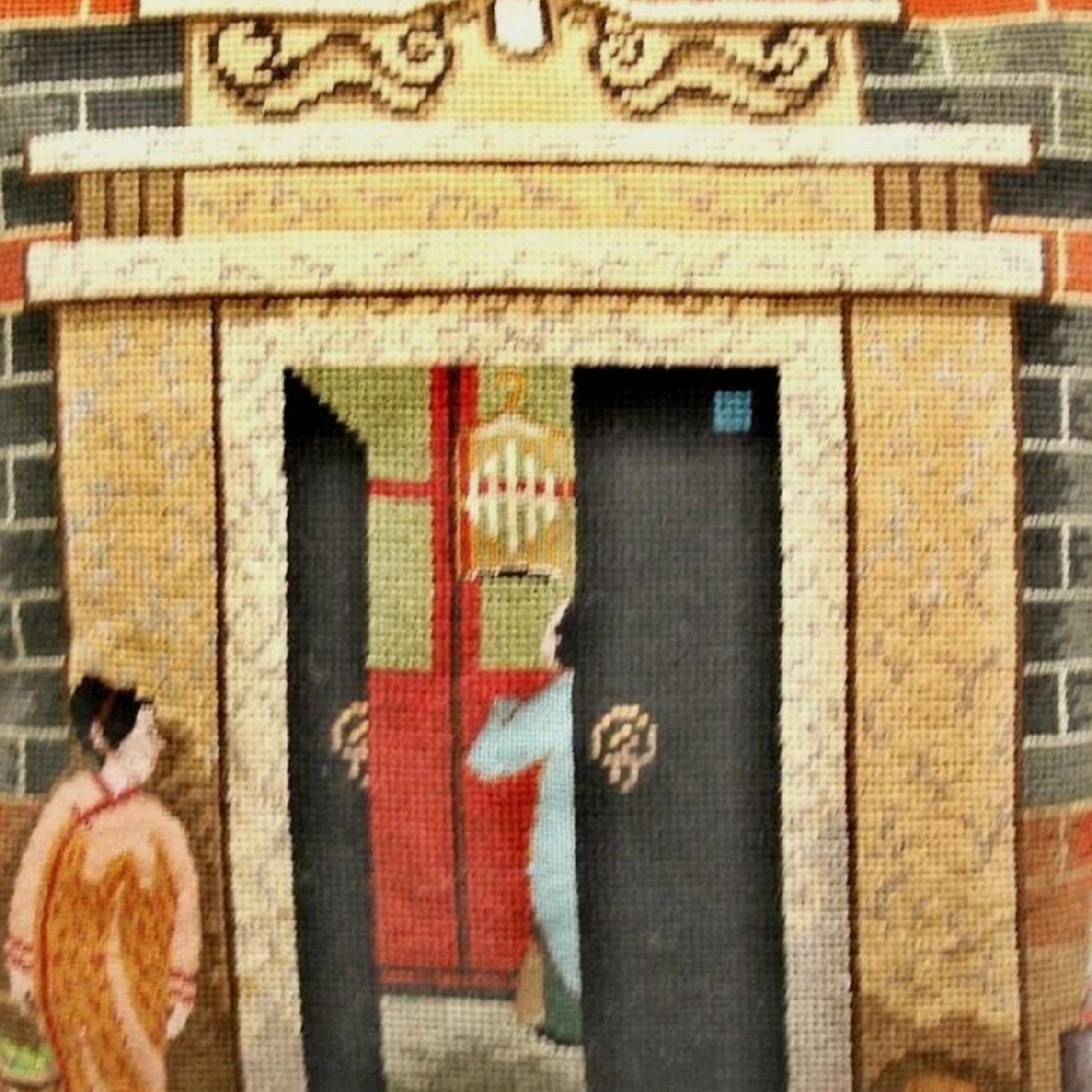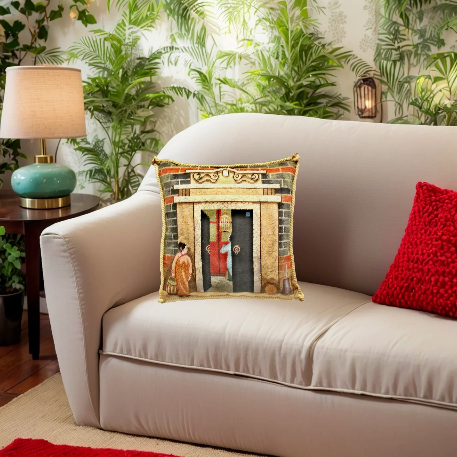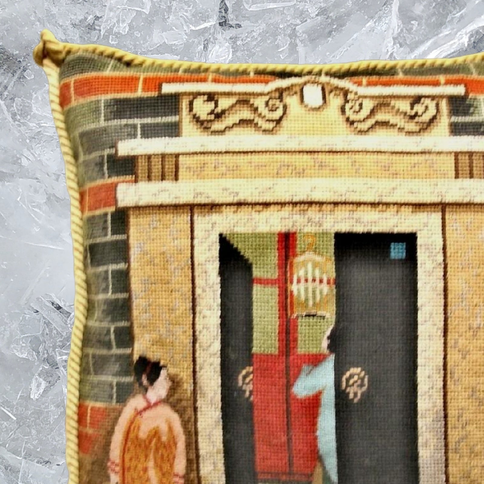 Handmade Wool Needlepoint Pillow Cover - Decorative Throw Cushion Cover - Vintage Floral Embroidery Design Shanghai ShiKuMen with cording
