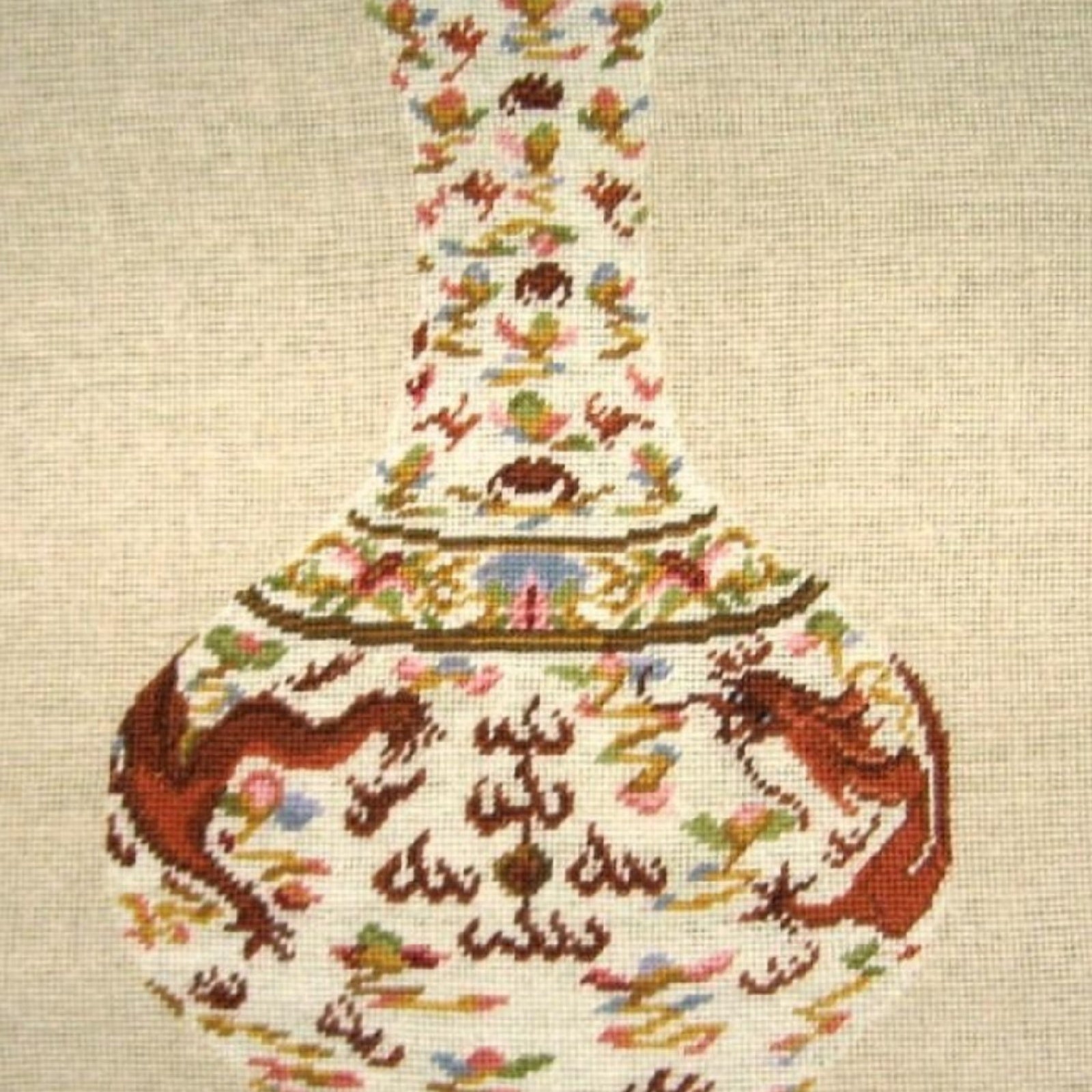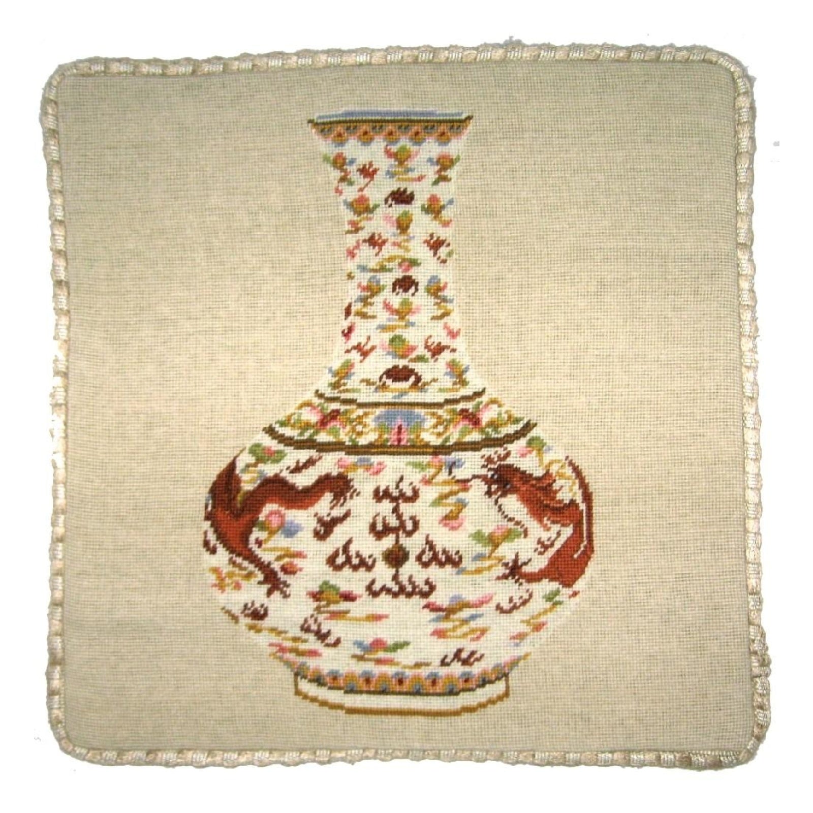 Handmade Wool Needlepoint Pillow Cover - Decorative Throw Cushion Cover - Vintage Floral Embroidery Design Ming dynasty dragon vast with cording