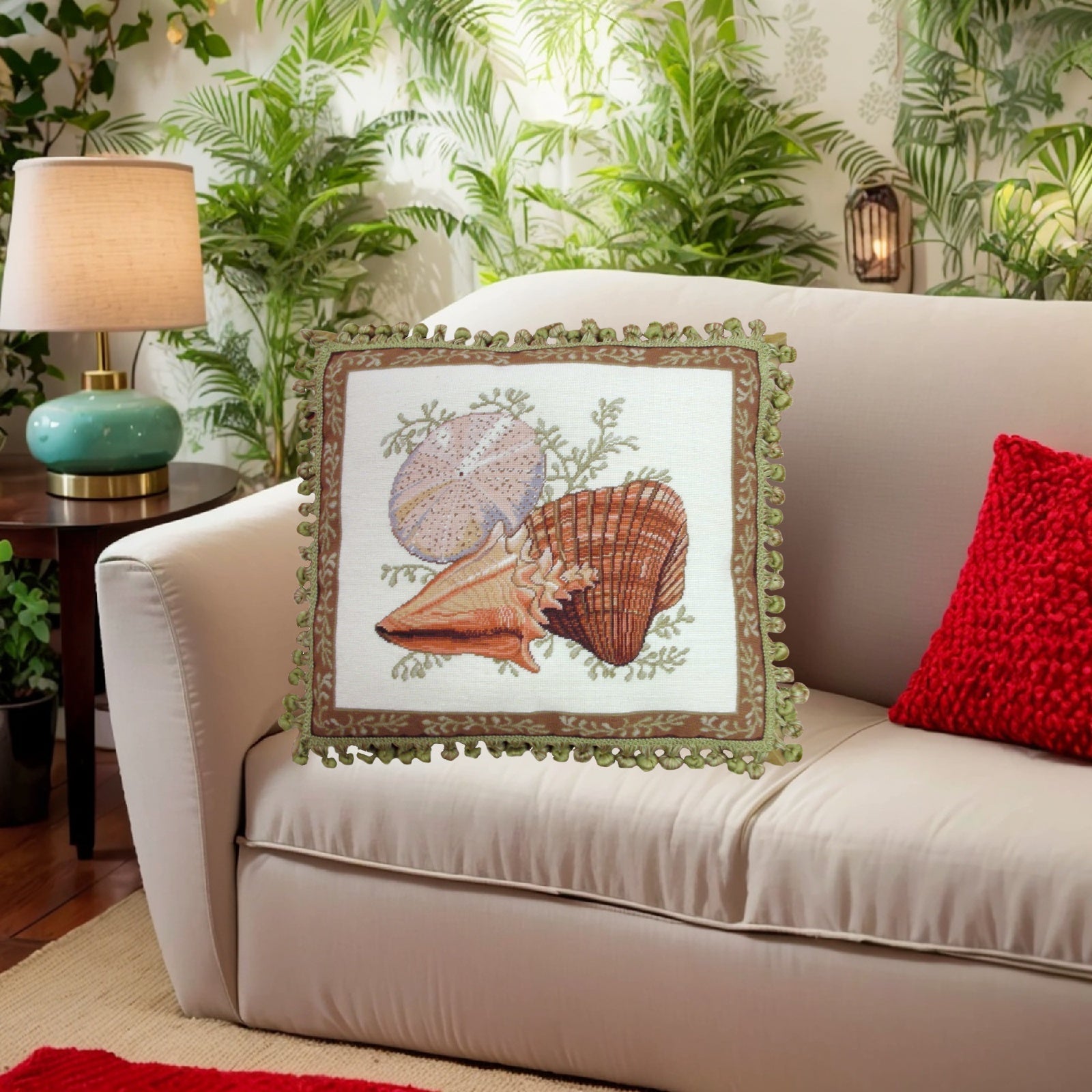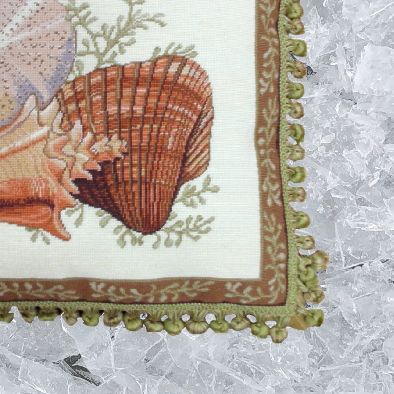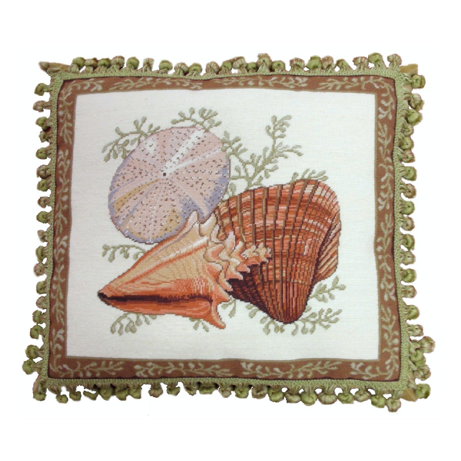 Handmade Wool Needlepoint Pillow Cover - Decorative Throw Cushion Cover - Vintage Floral Embroidery Design Wendy Russells Shell-1 with tassel