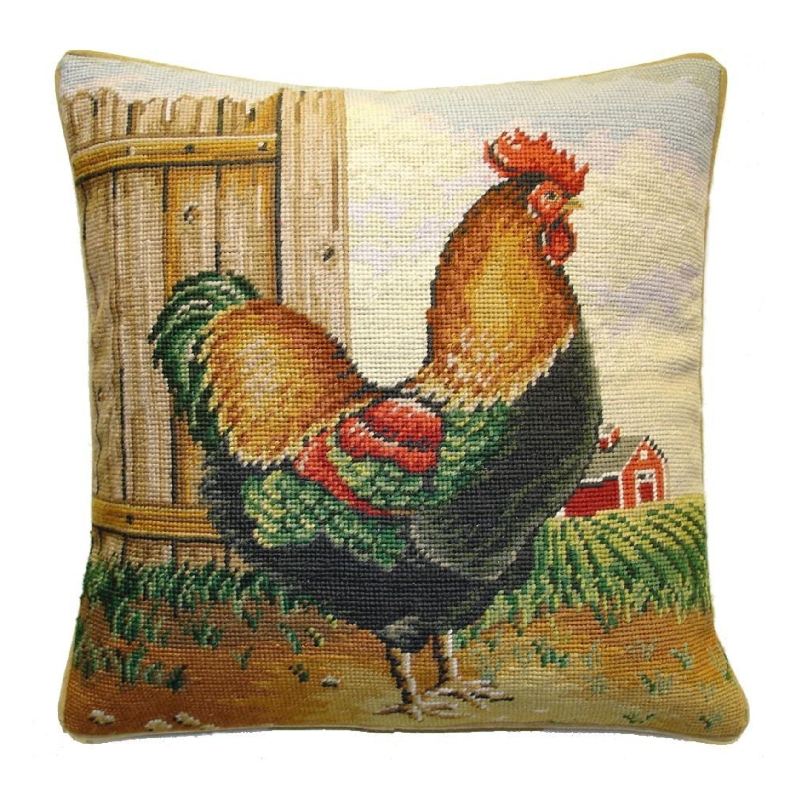 Handmade Wool Needlepoint Pillow Cover - Decorative Throw Cushion Cover - Vintage Floral Embroidery Design roosterMcGee