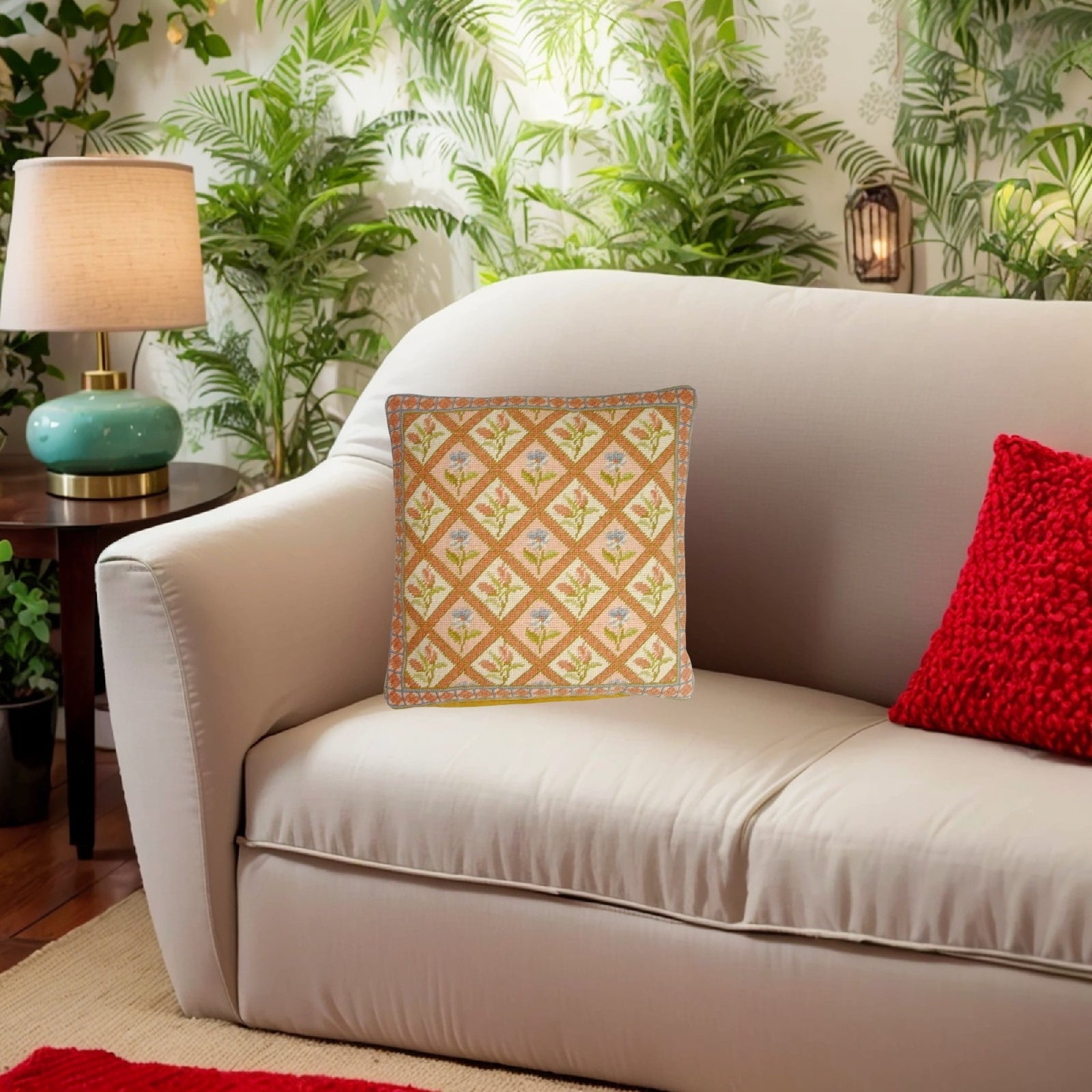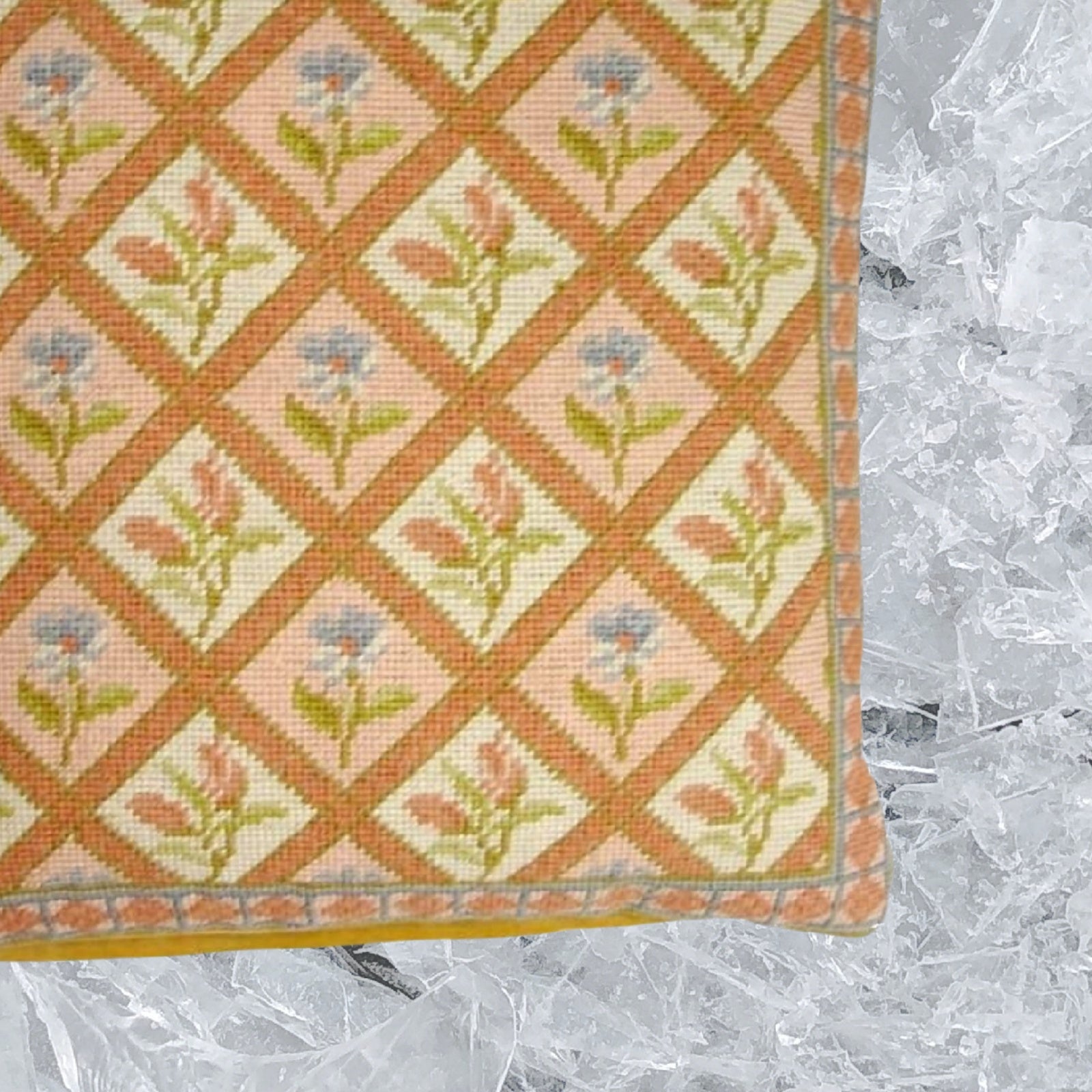 Handmade Wool Needlepoint Pillow Cover - Decorative Throw Cushion Cover - Vintage Floral Embroidery Design IVV
