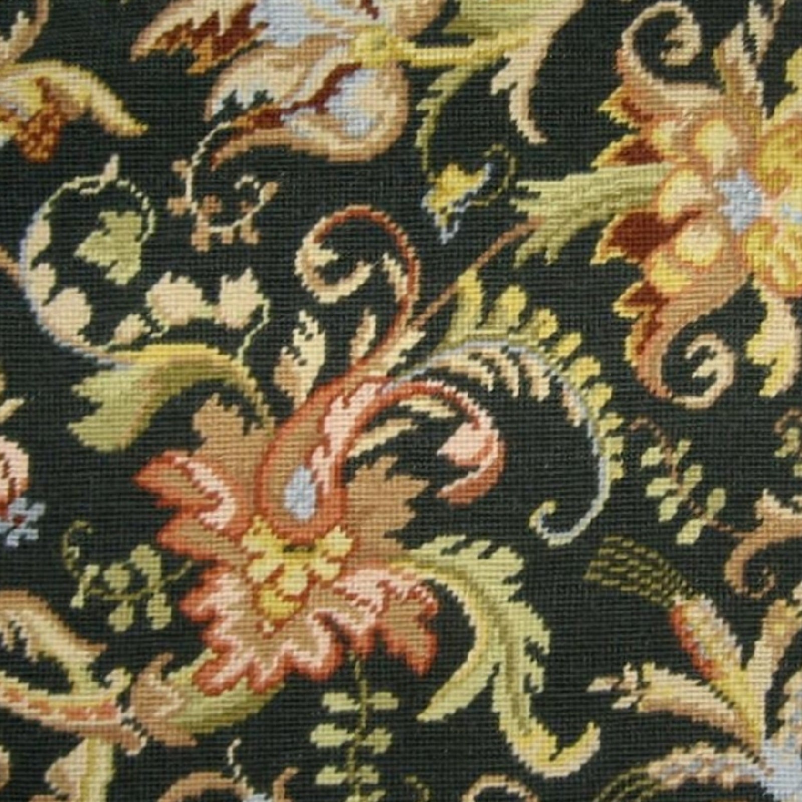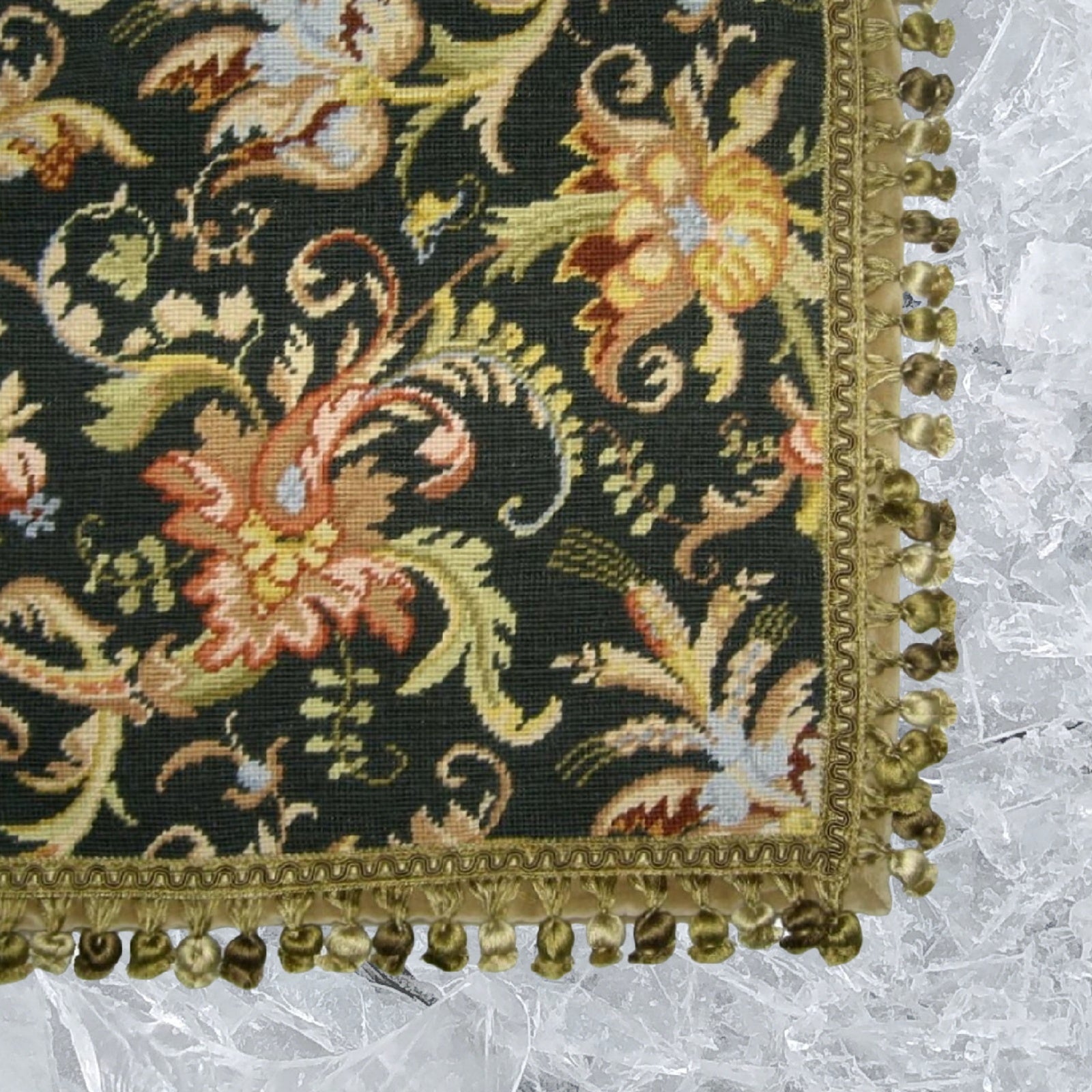 Handmade Wool Needlepoint Pillow Cover - Decorative Throw Cushion Cover - Vintage Floral Embroidery Design wheat flower blooming in summer midnight washed black back with tassels