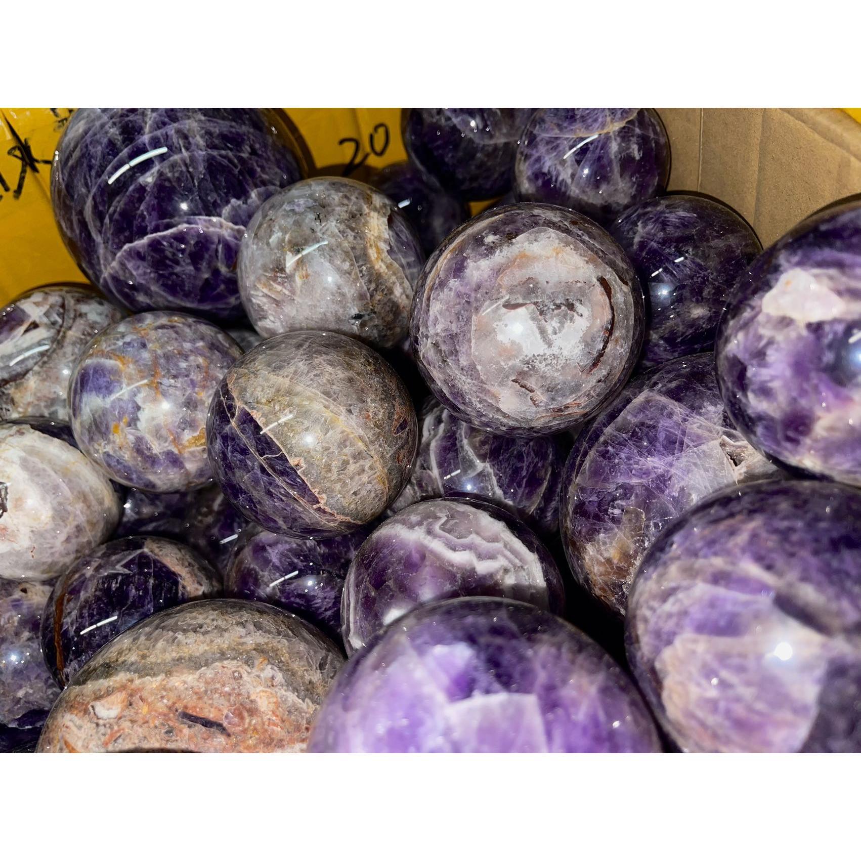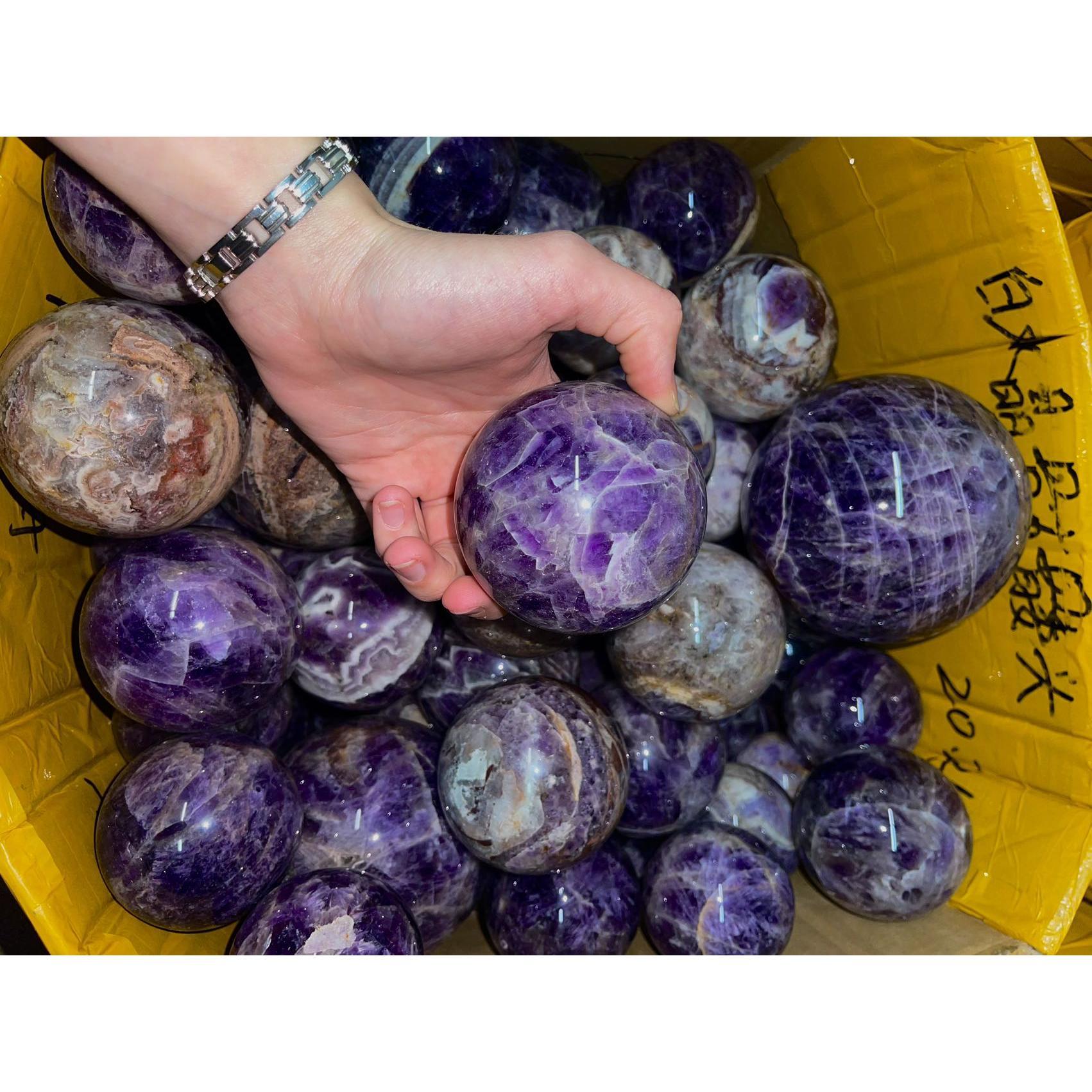 Introducing our beautiful Chevron Amethyst Sphere - the perfect addition to any decorative collectibles collection. Made from high-quality materials, this stunning statue features a unique and eye-catching chevron pattern, adding an element of elegance to any room.